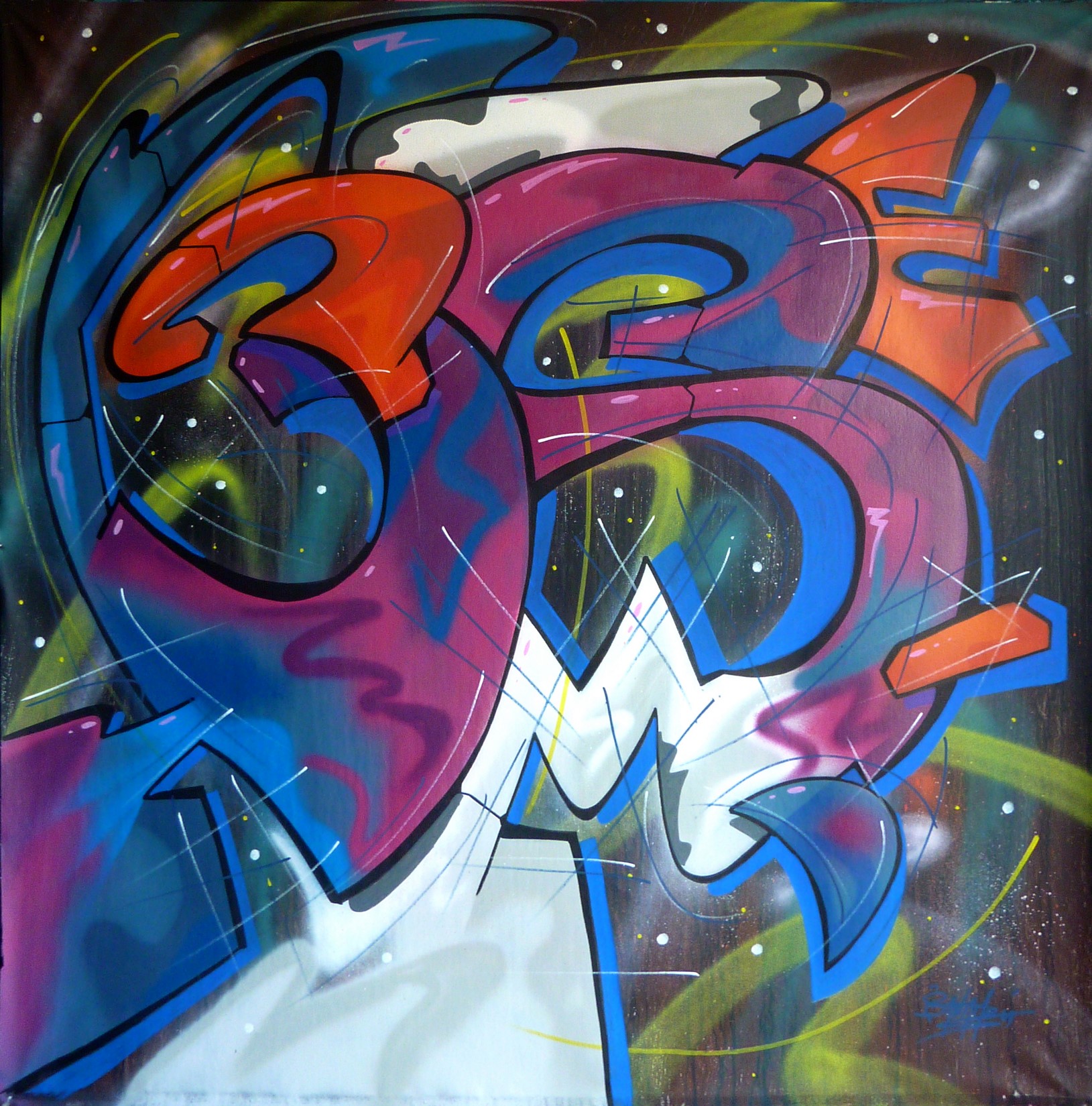 Spray et acrylique sur toile enroulée