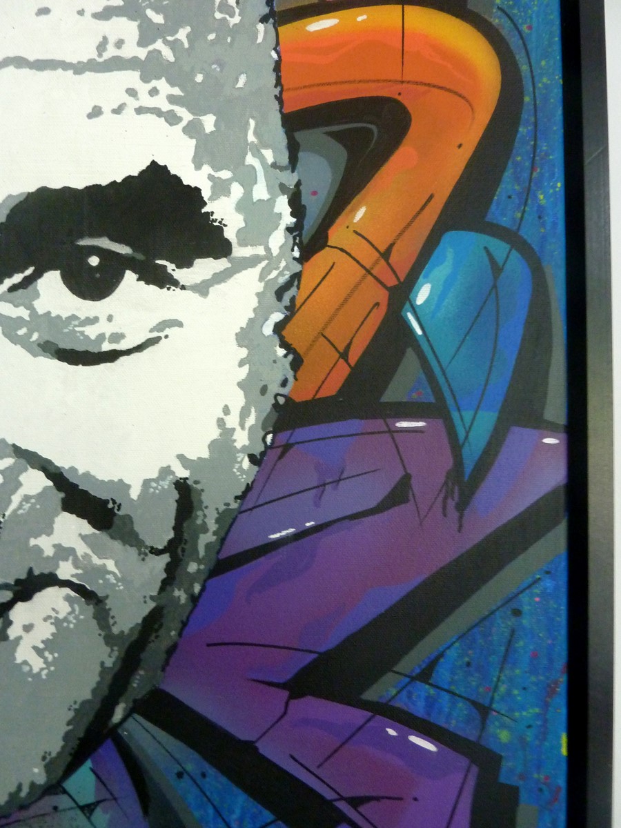 Acrylique et spray sur toile sur châssis + caisse américaine