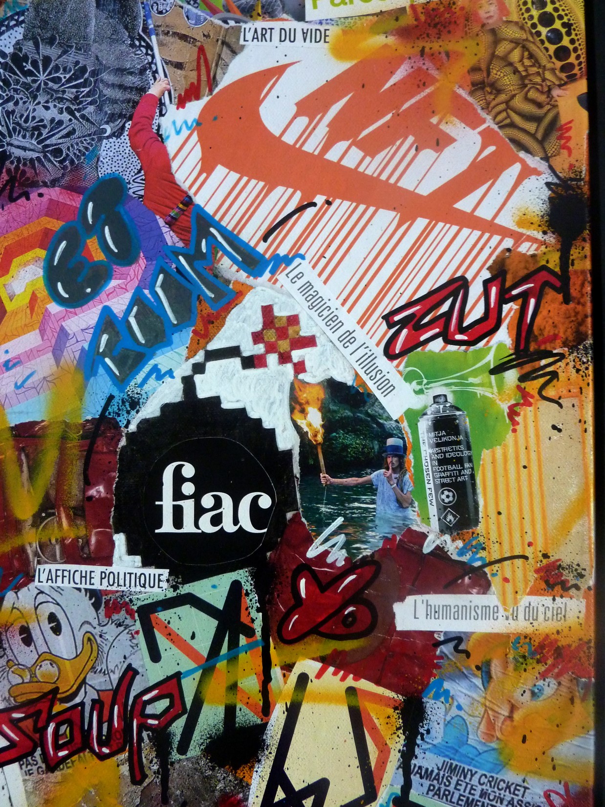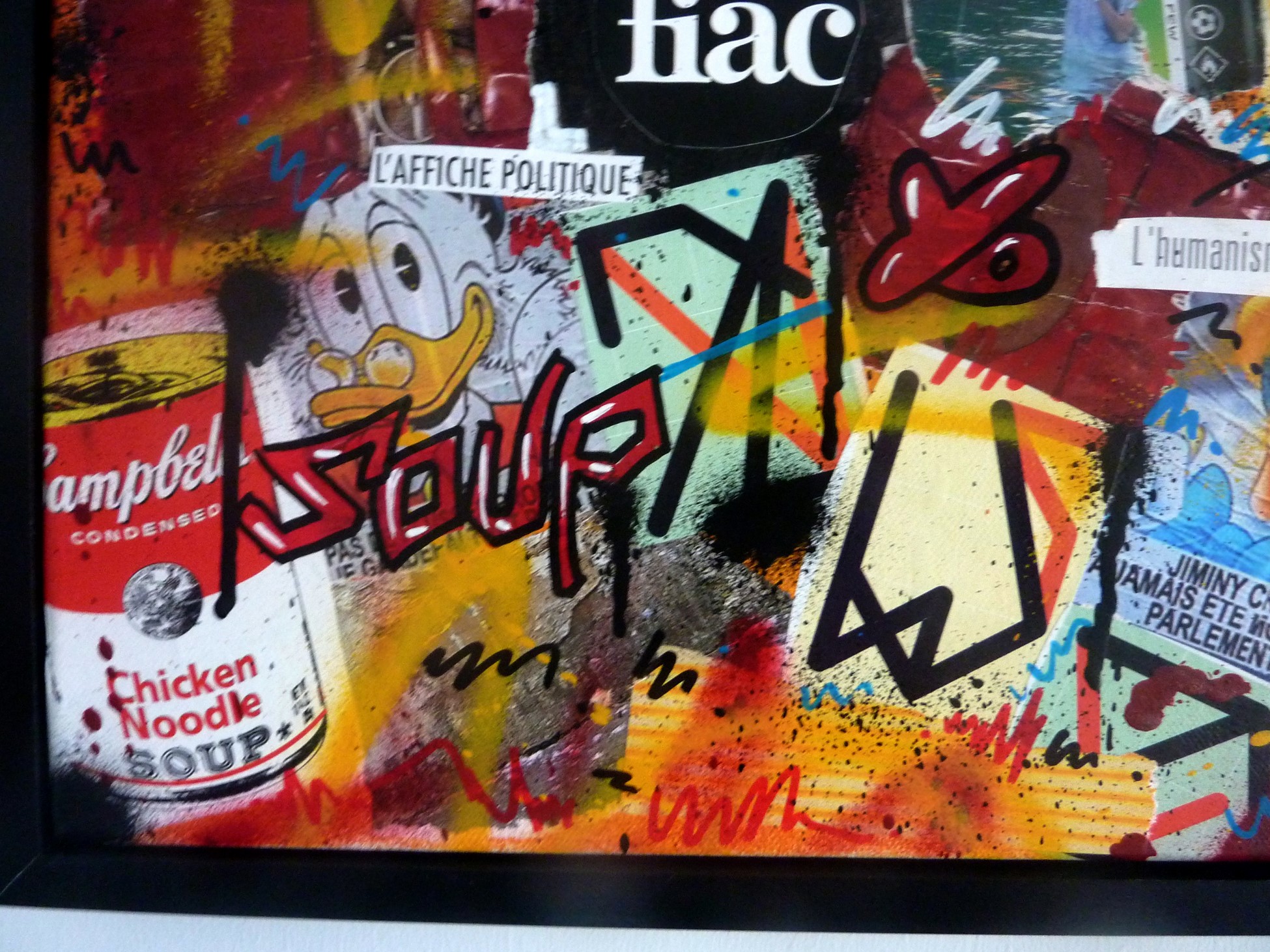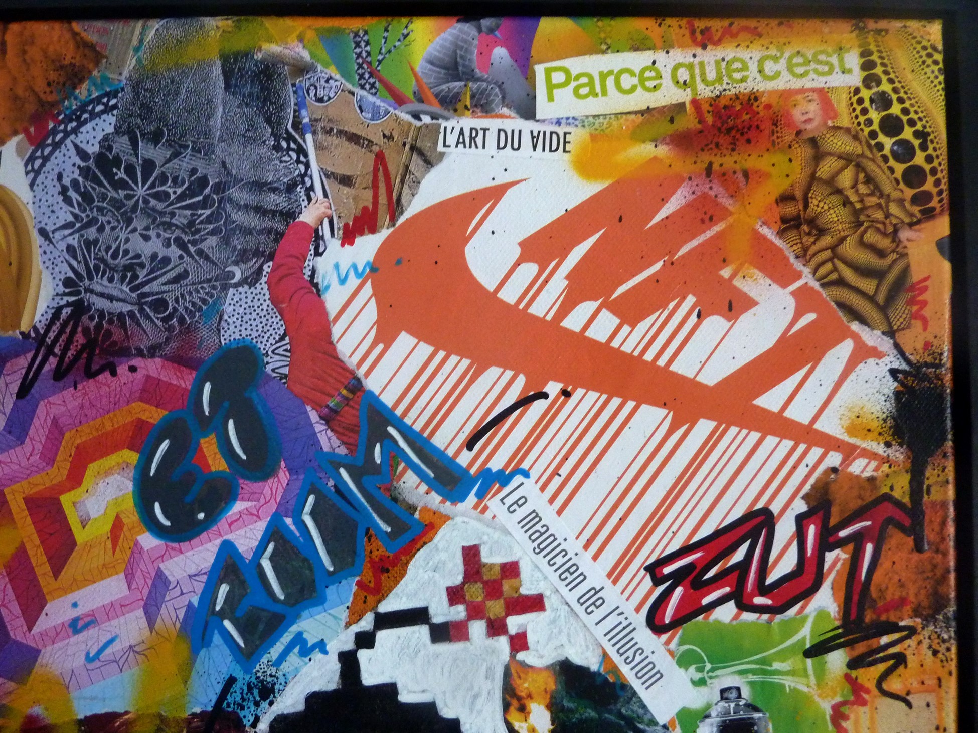 Collage, spray et acrylique sur toile montée sur châssis + caisse américaine
