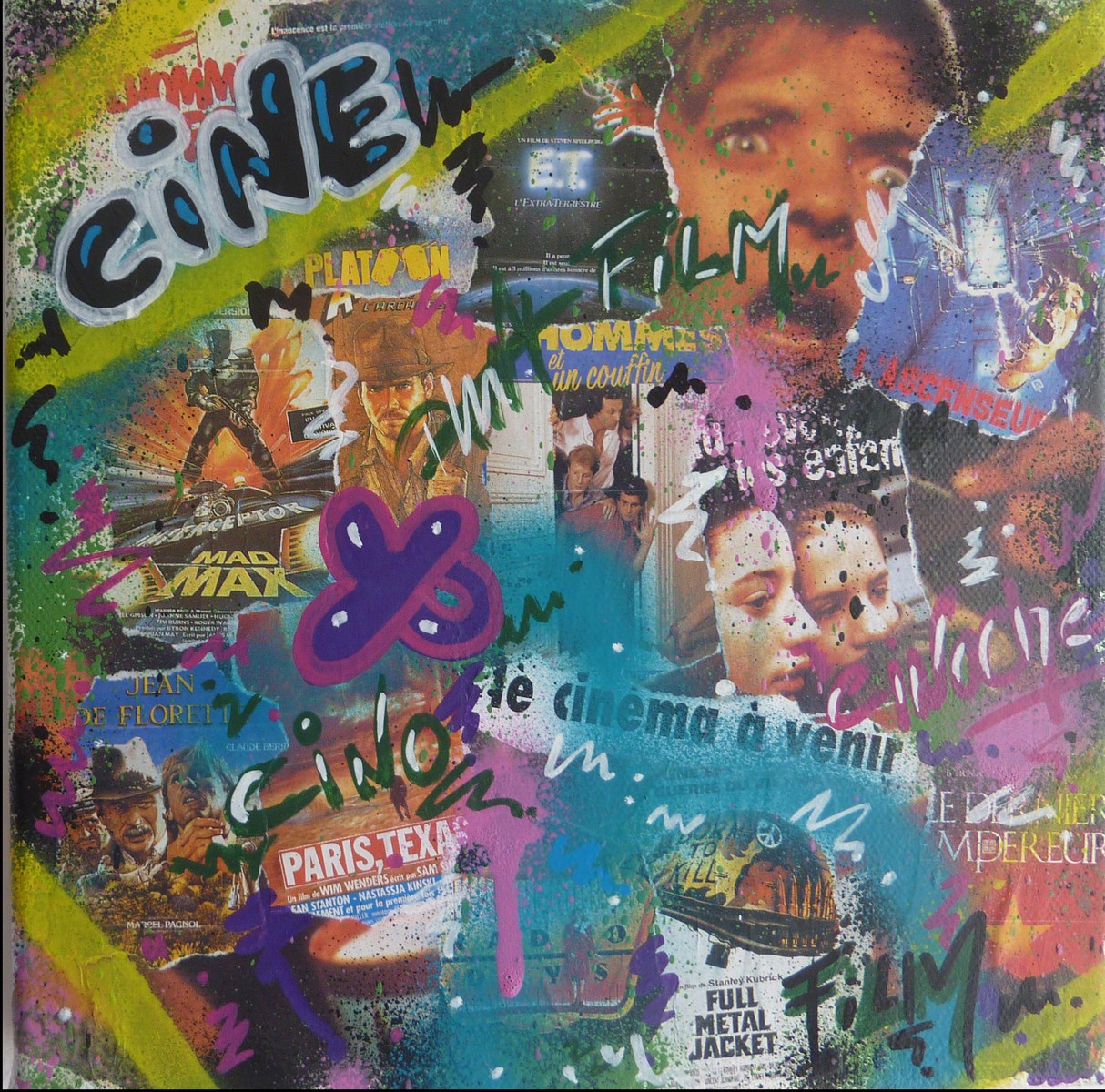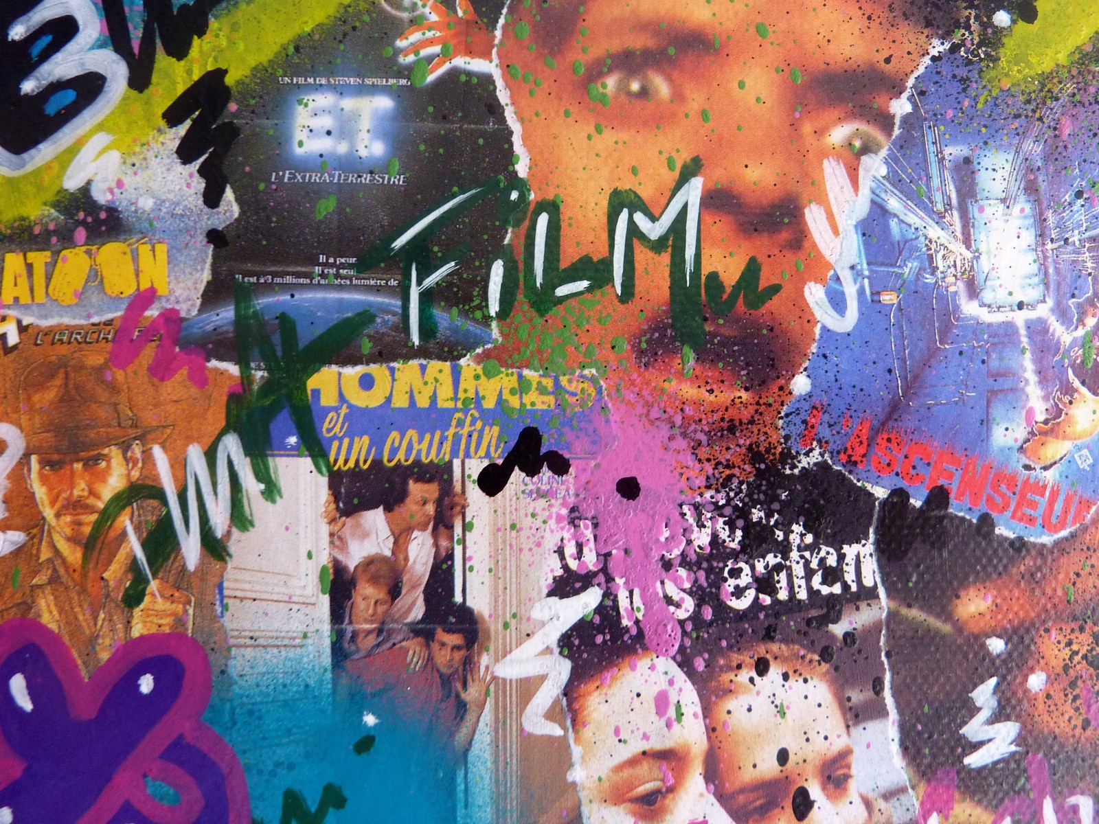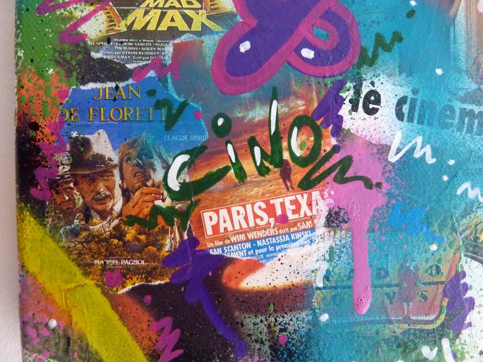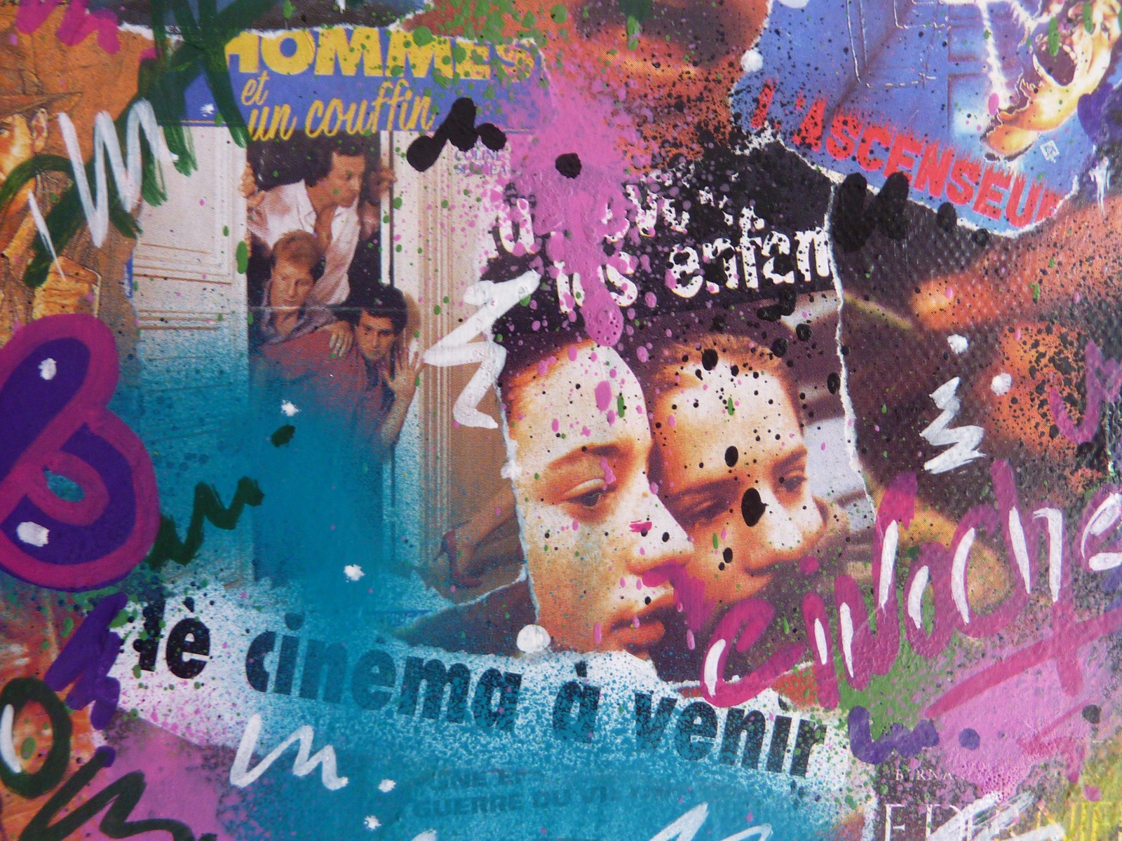 Collage, spray et acrylique sur toile montĂ©e sur chĂ¢ssis