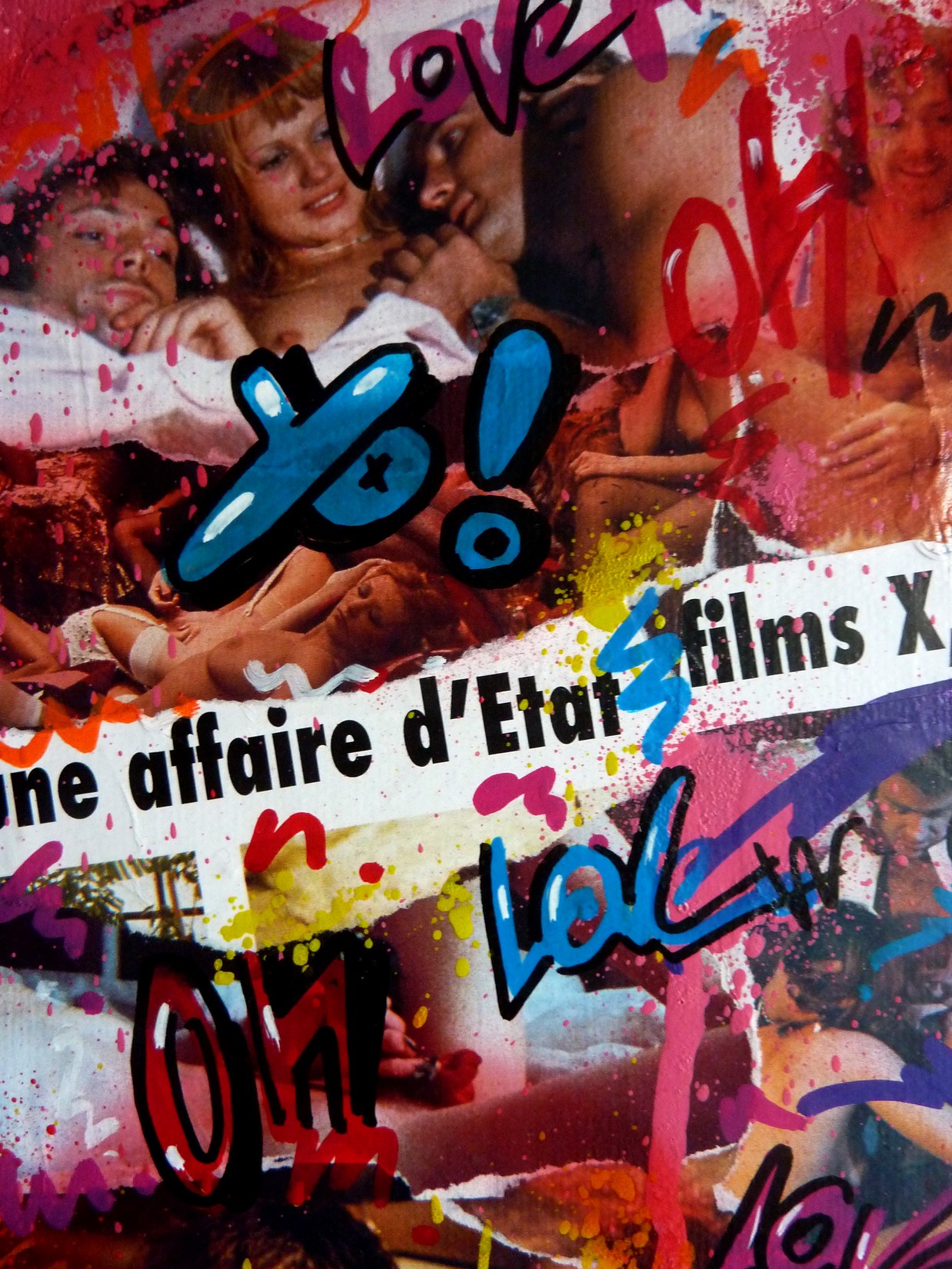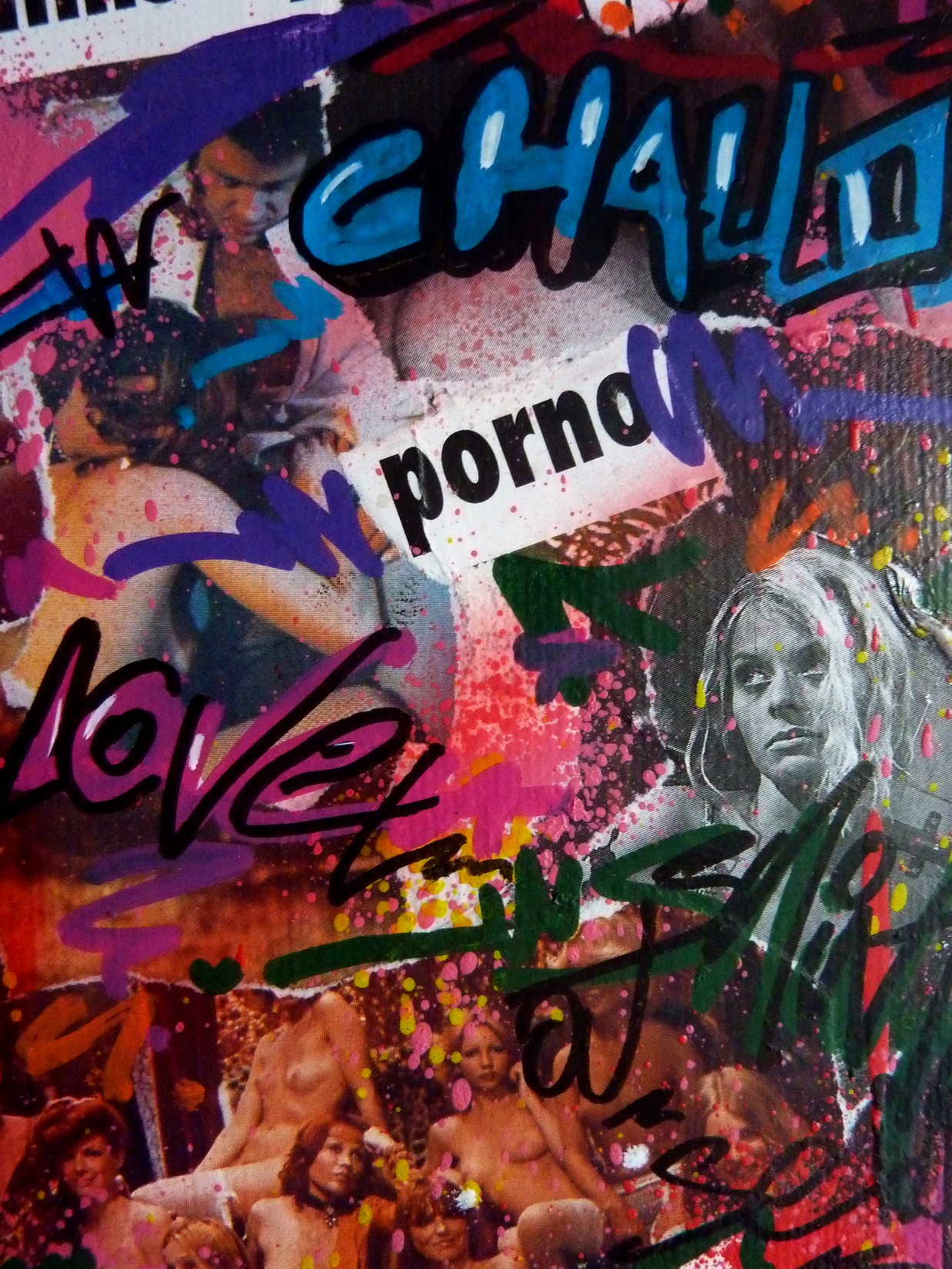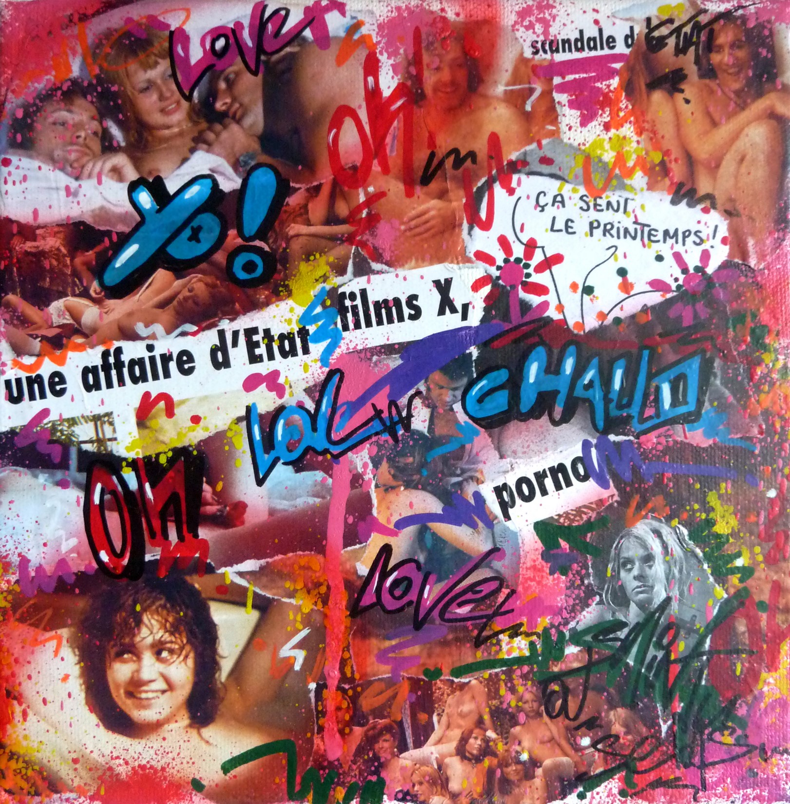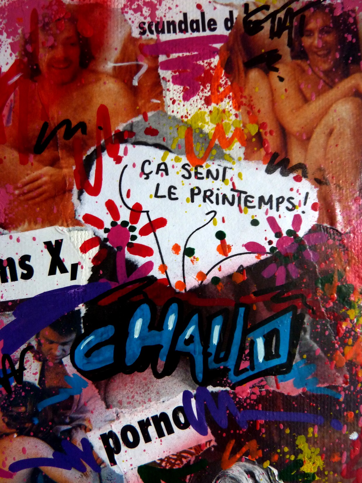 Collage, spray et acrylique sur toile montée sur châssis