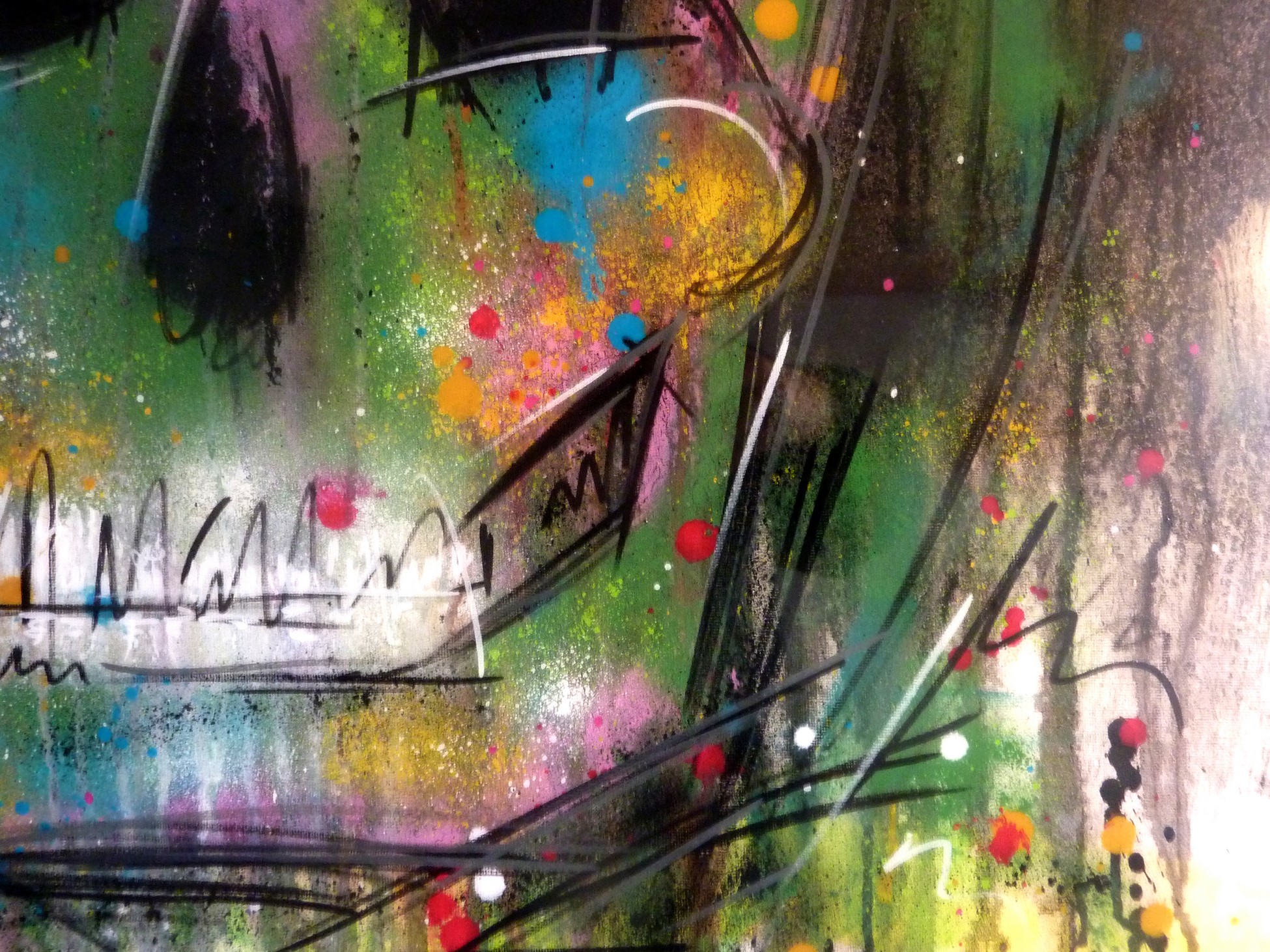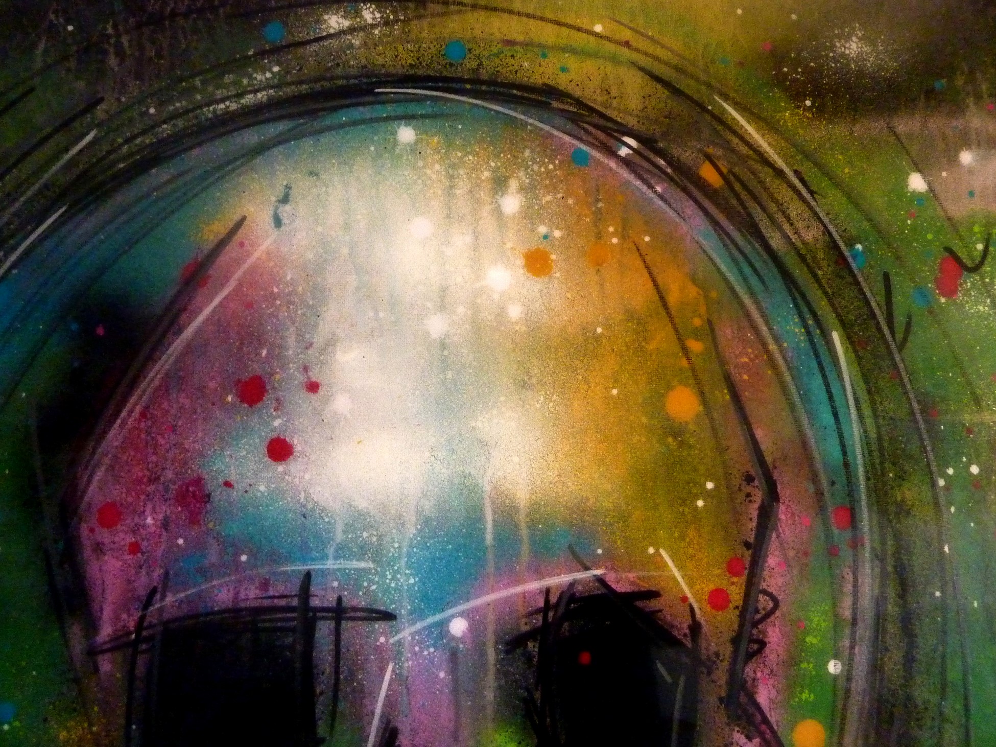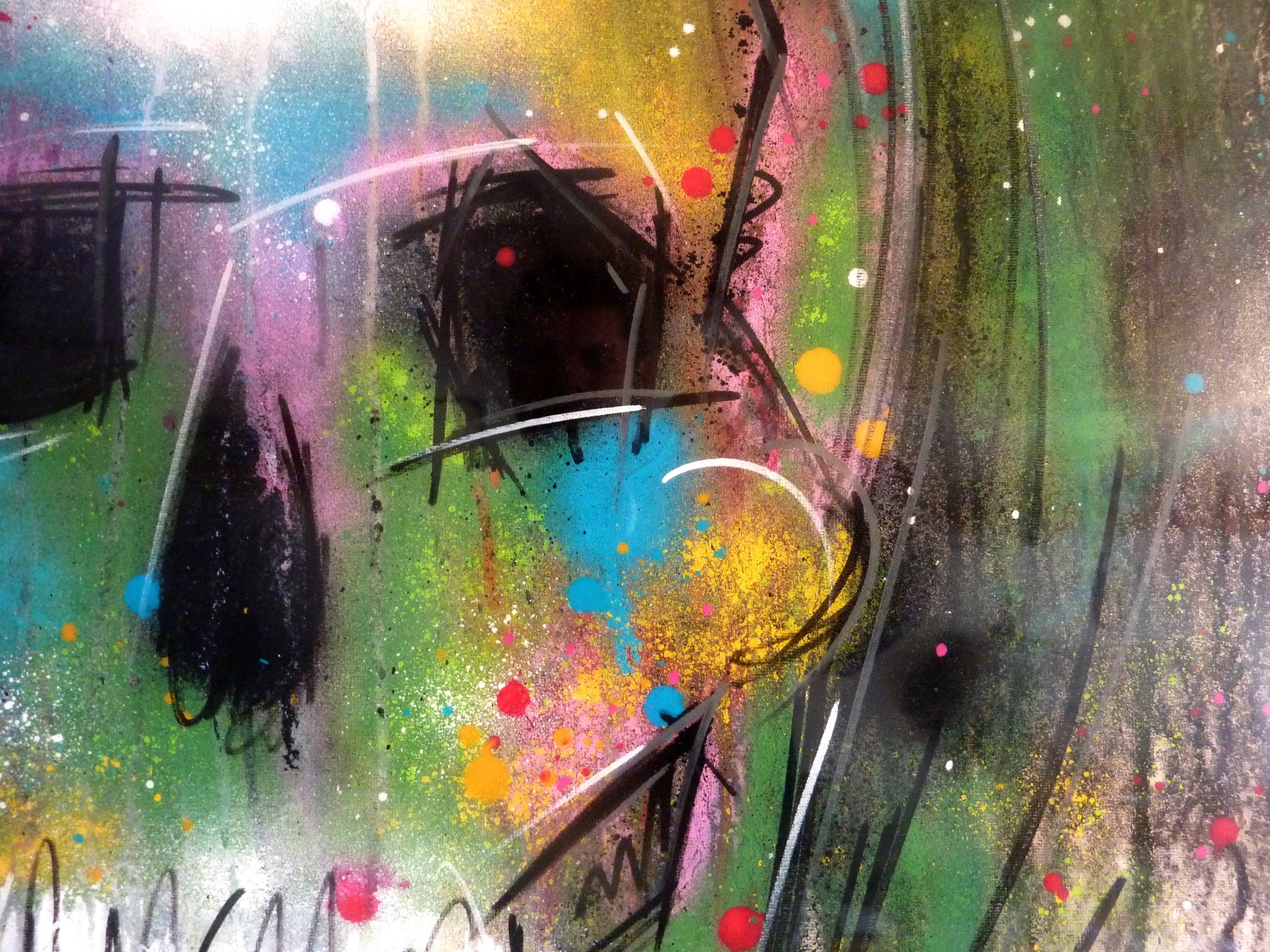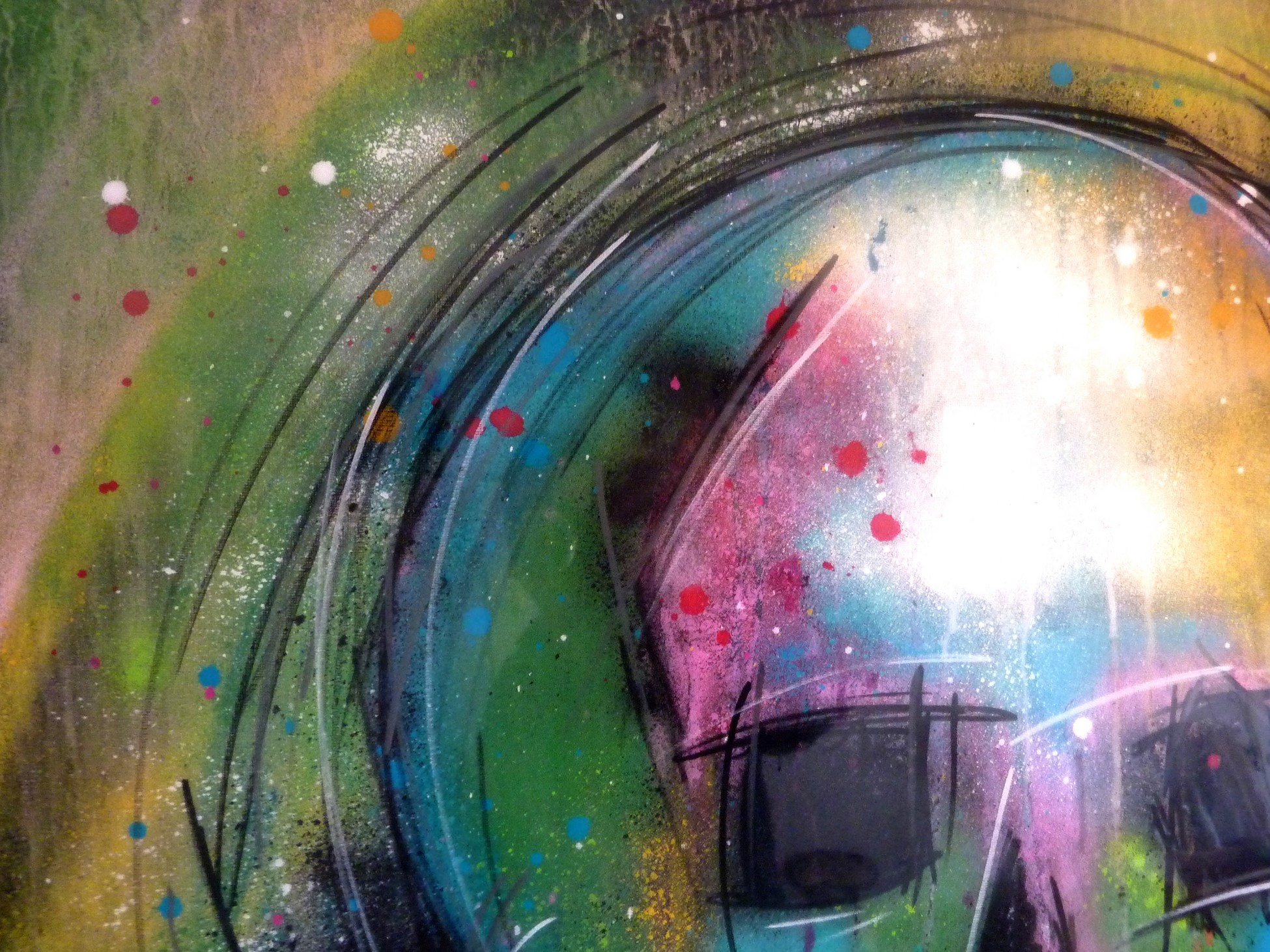 Spray, pastels,graphite et acrylique recouvert de résine transparente sur toile montée sur châssis