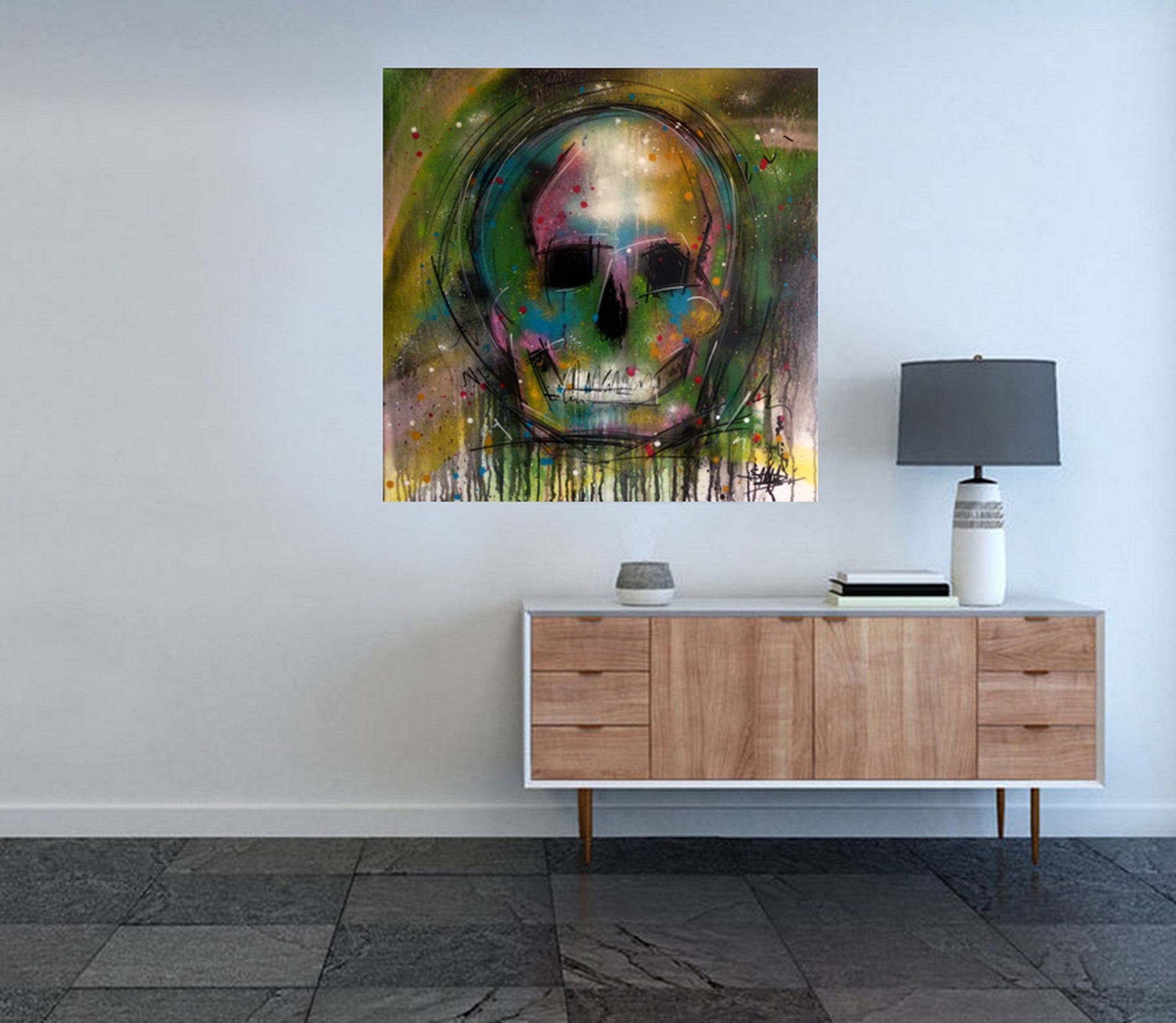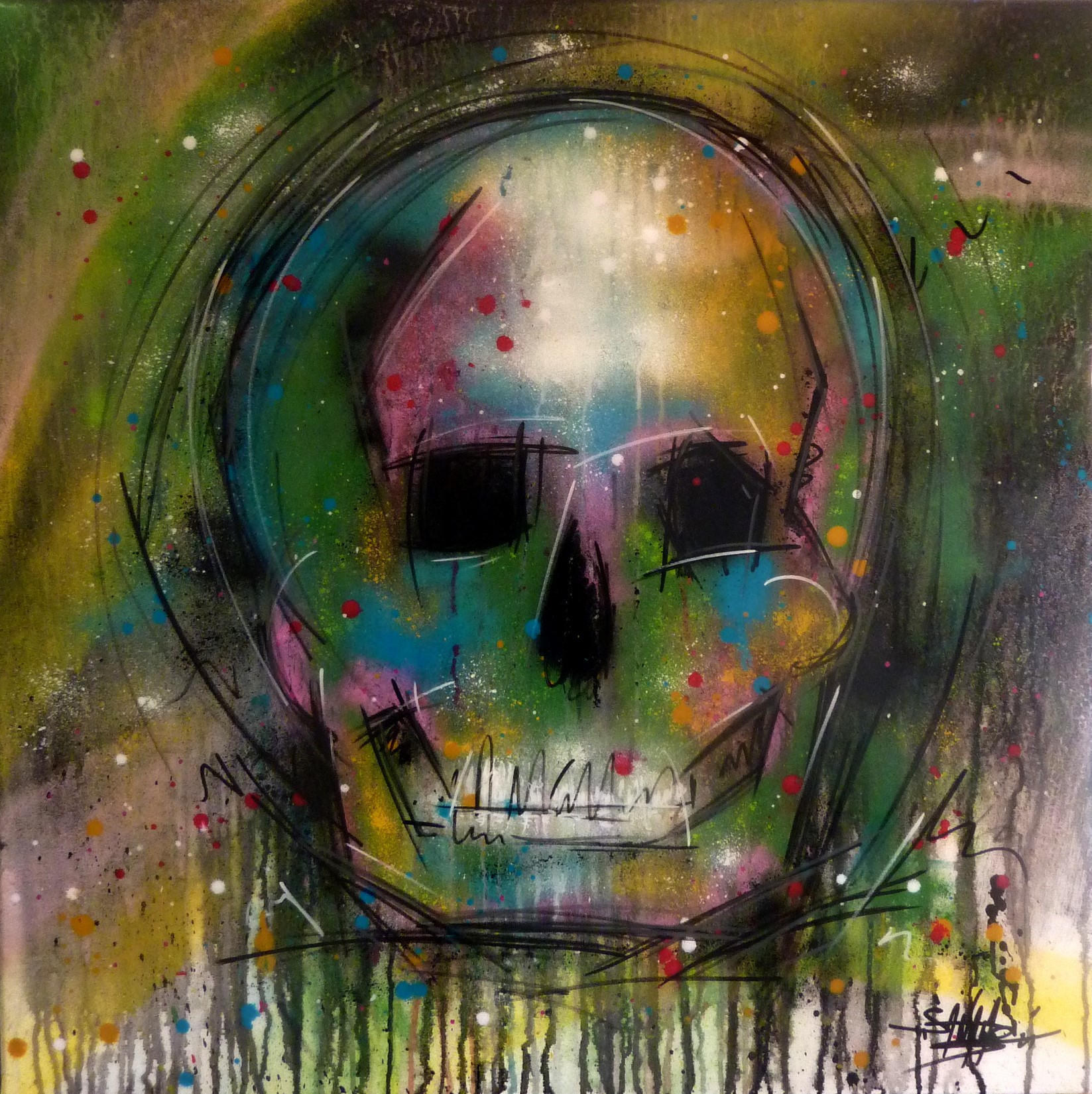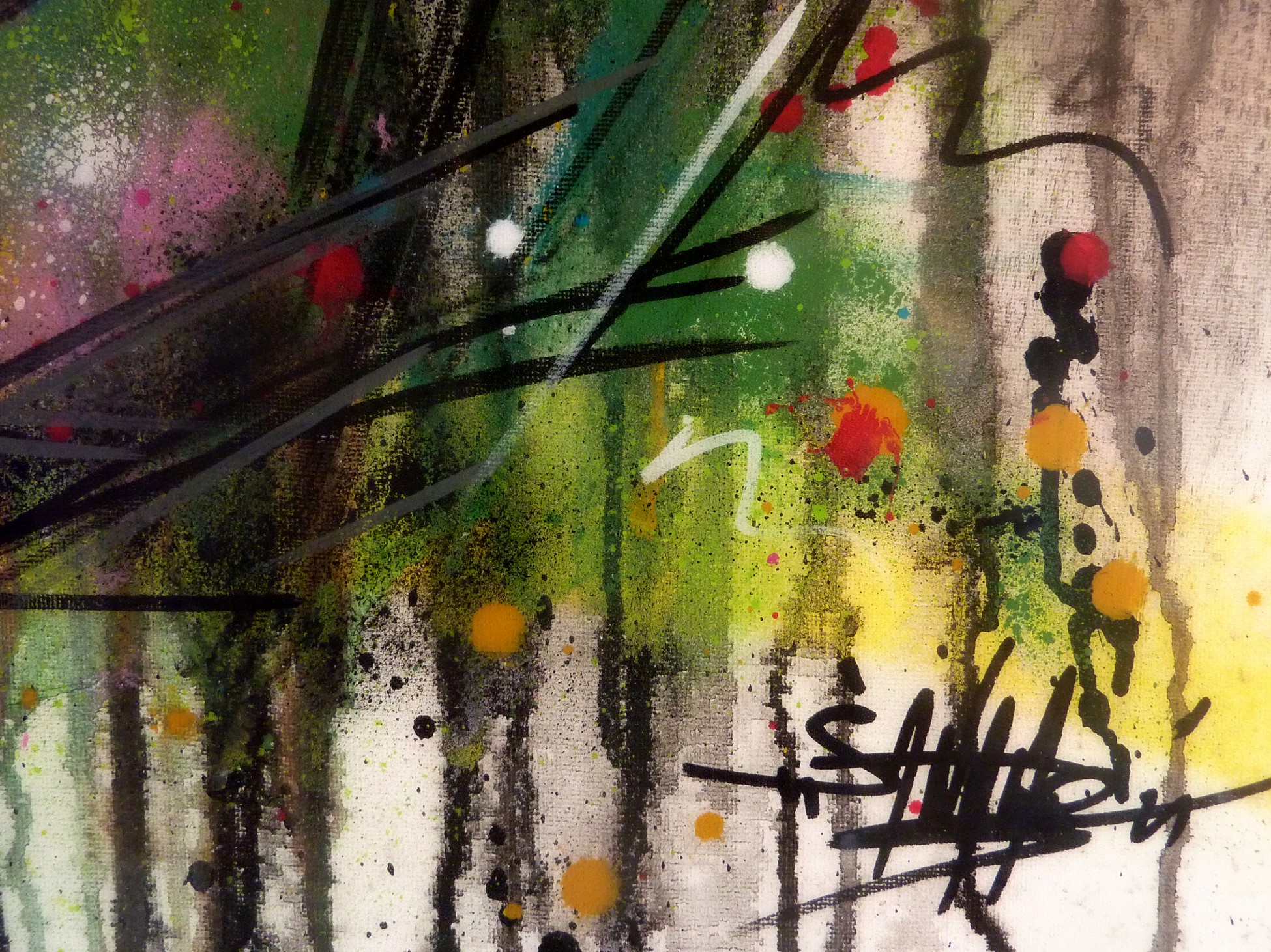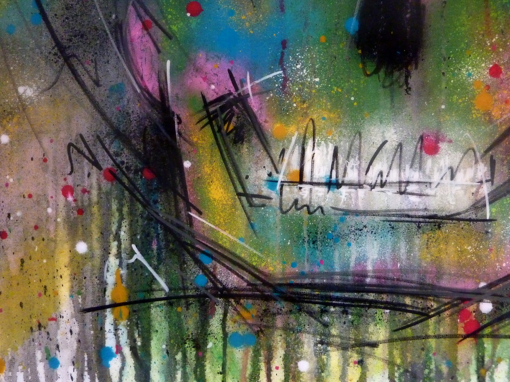 Spray, pastels,graphite et acrylique recouvert de résine transparente sur toile montée sur châssis