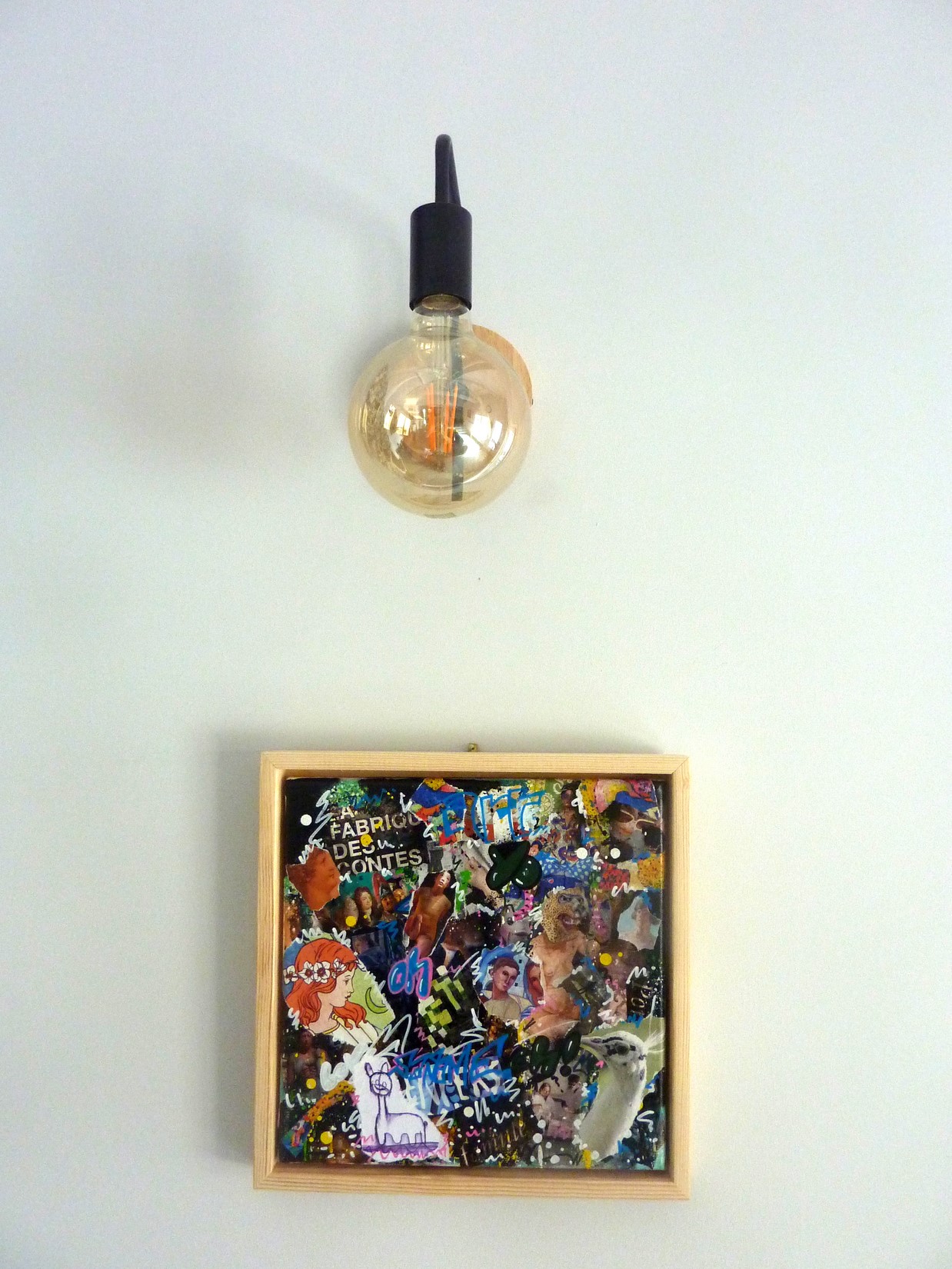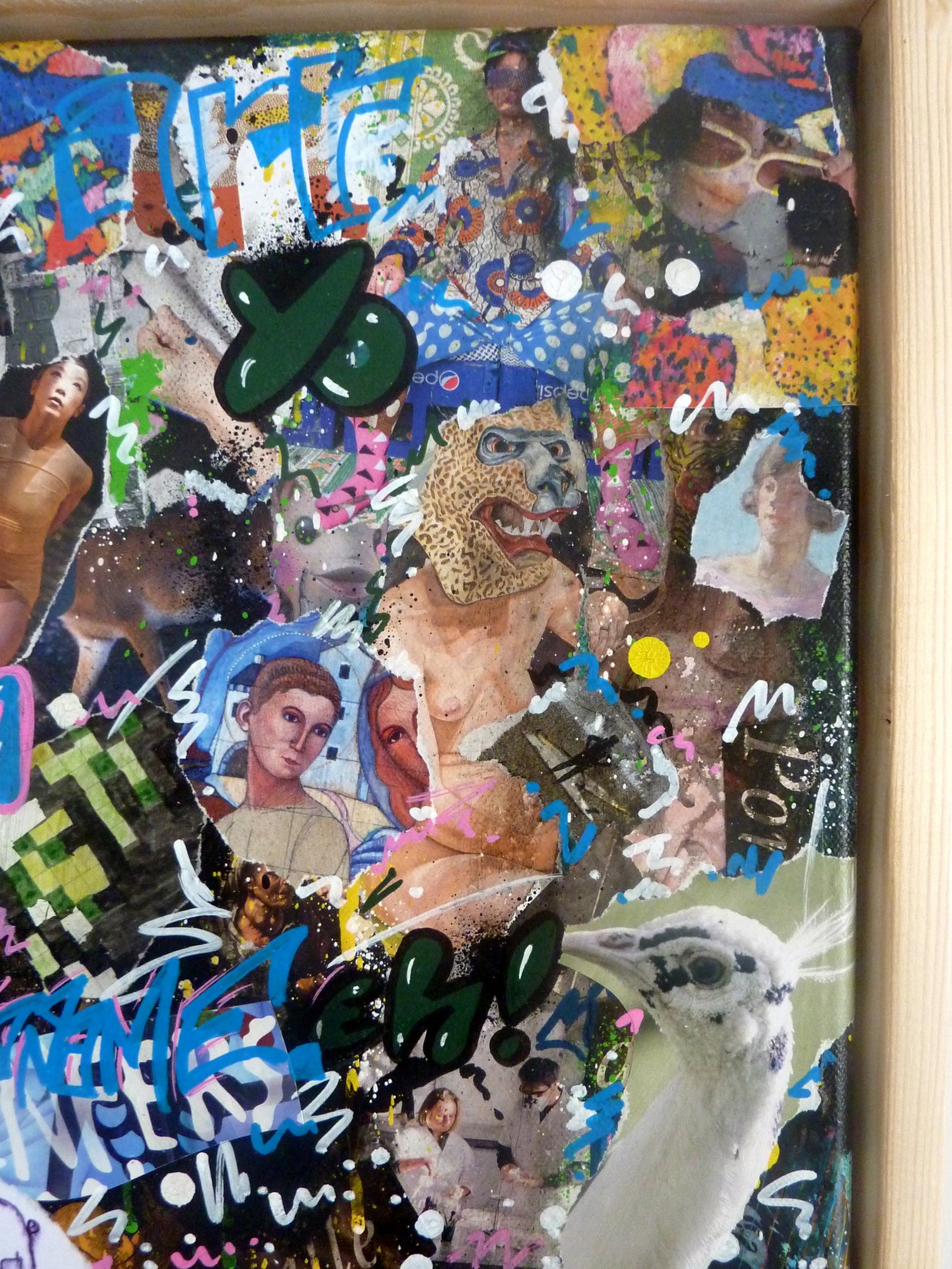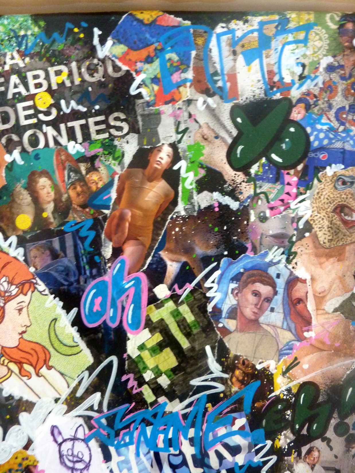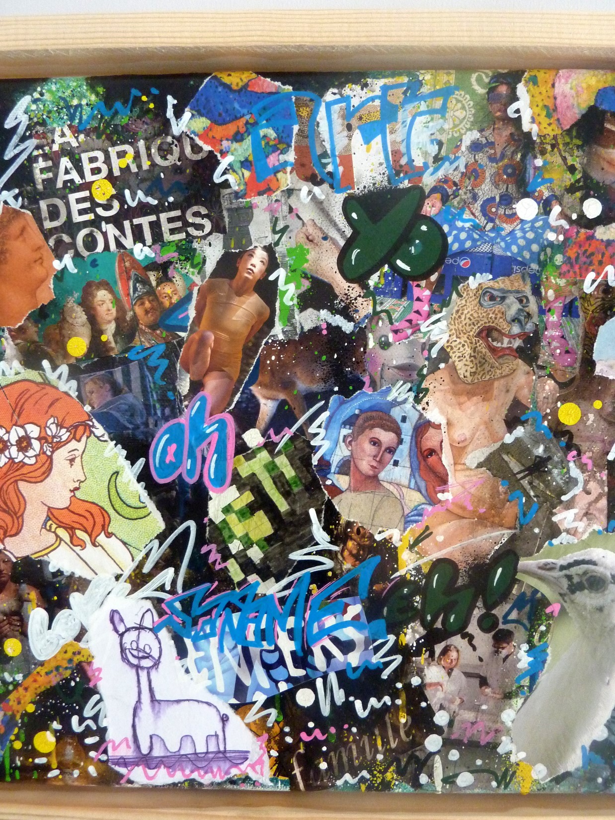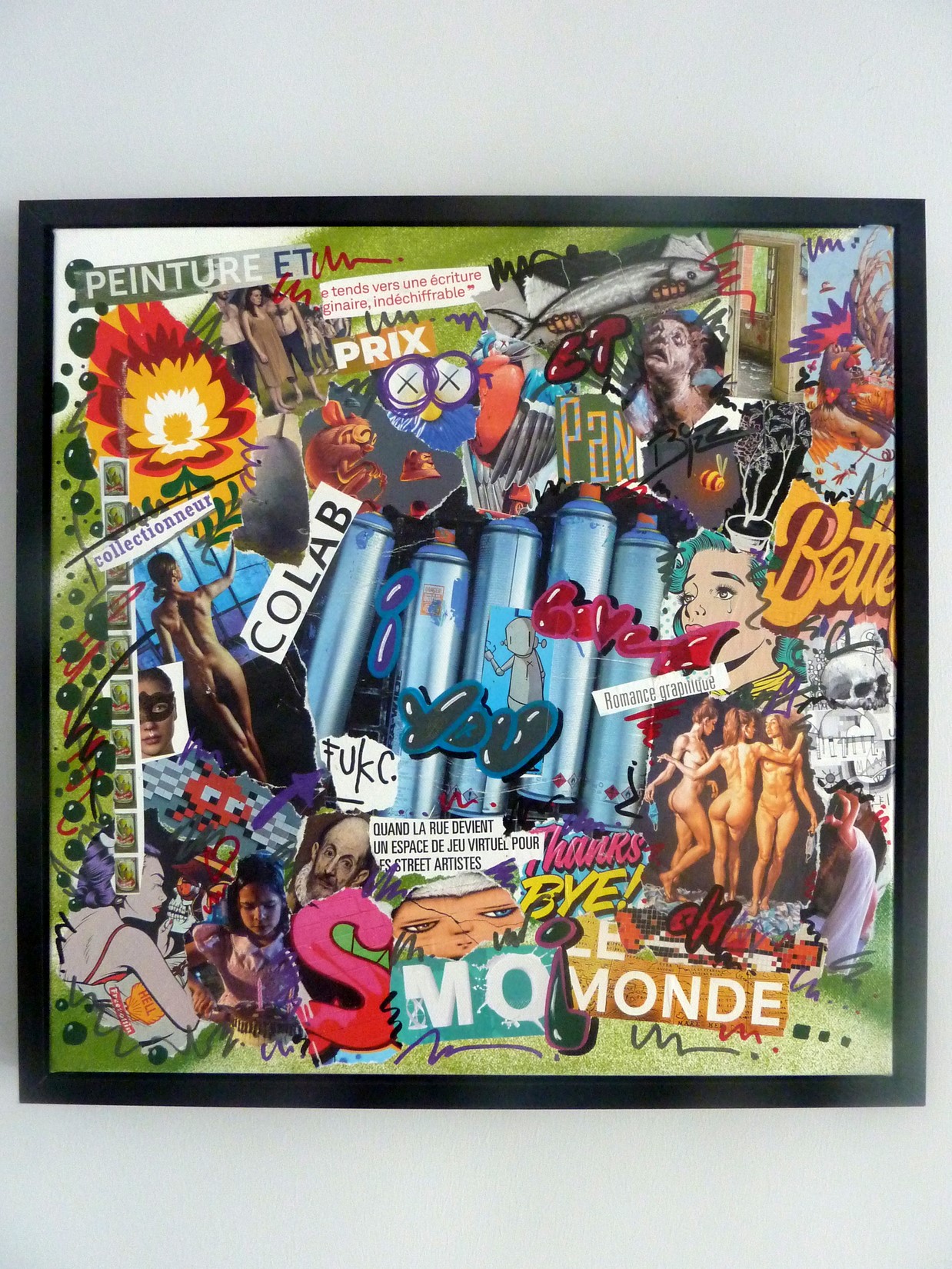 Collage, spray et acrylique sur toile montée sur châssis + caisse américaine