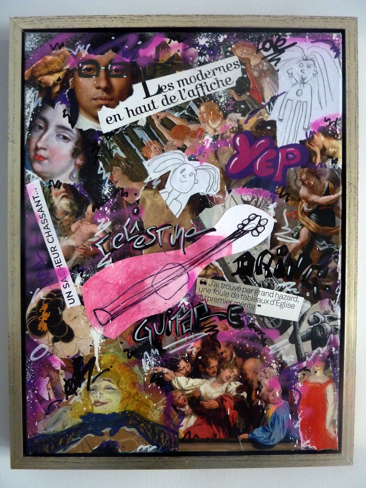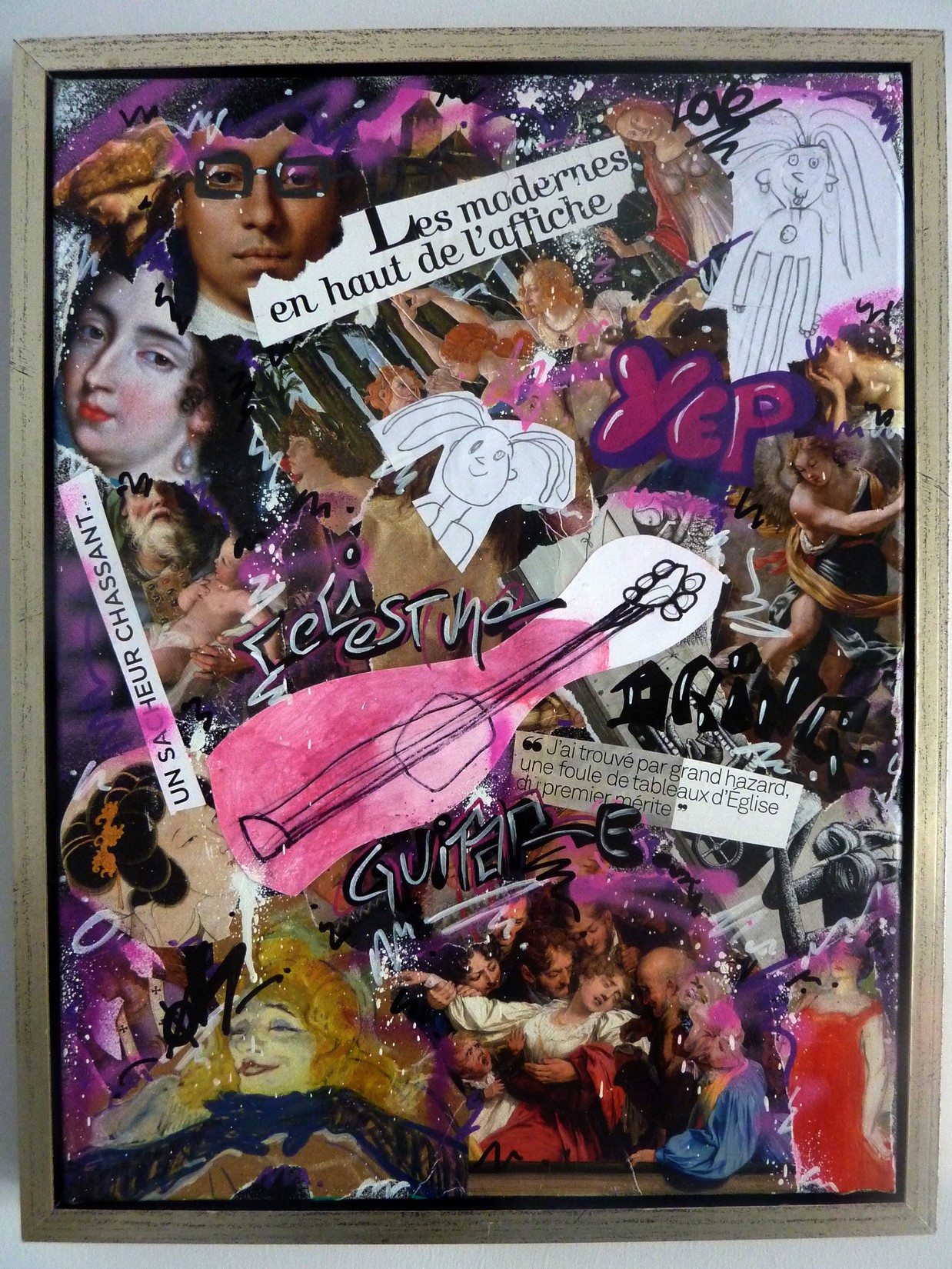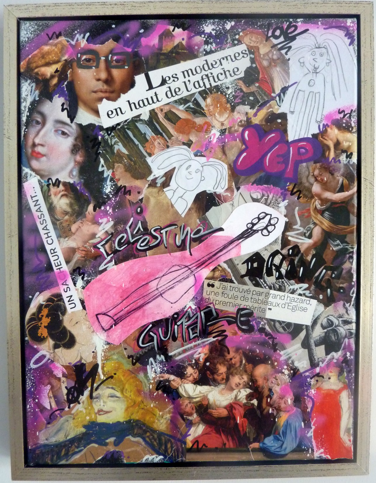 Collage, spray et acrylique sur toile montée sur châssis + caisse américaine