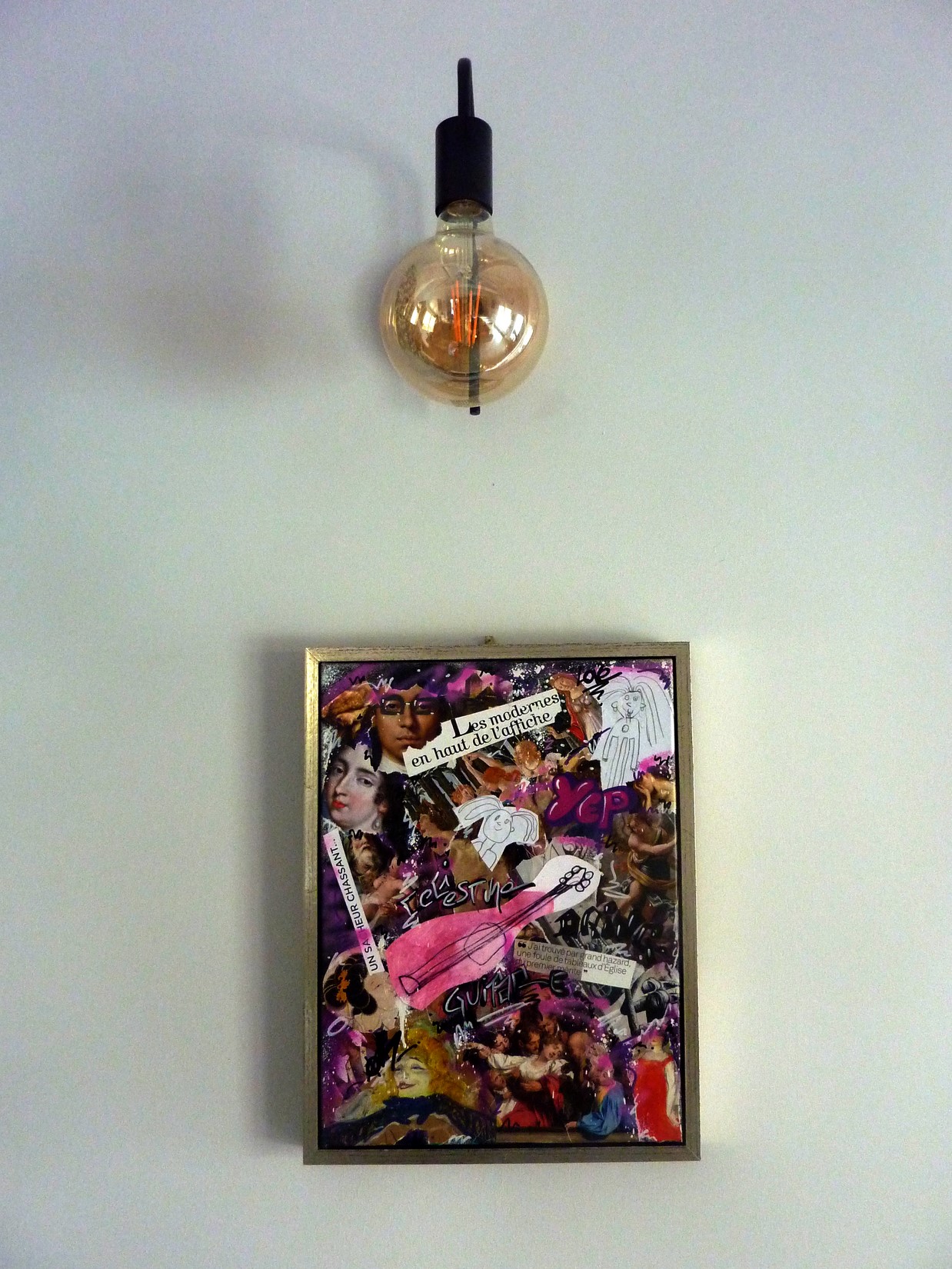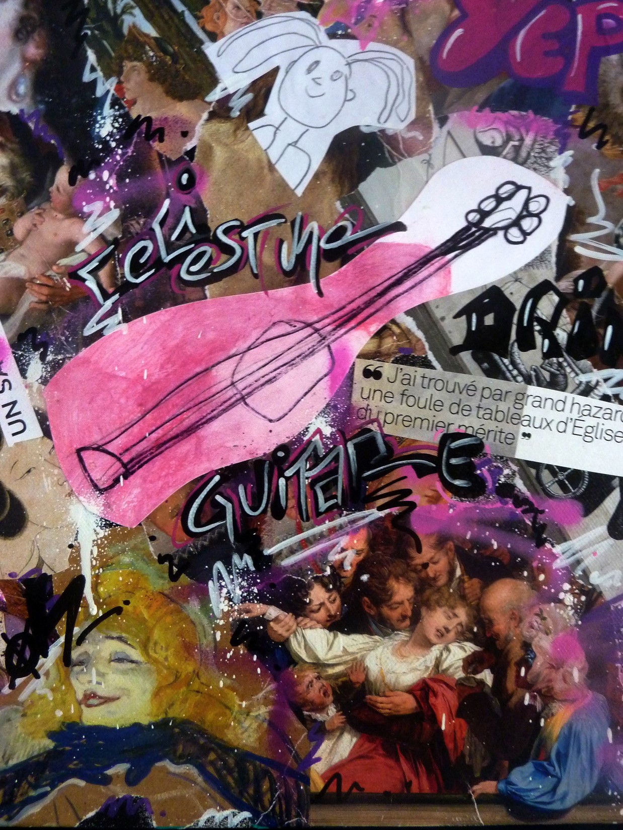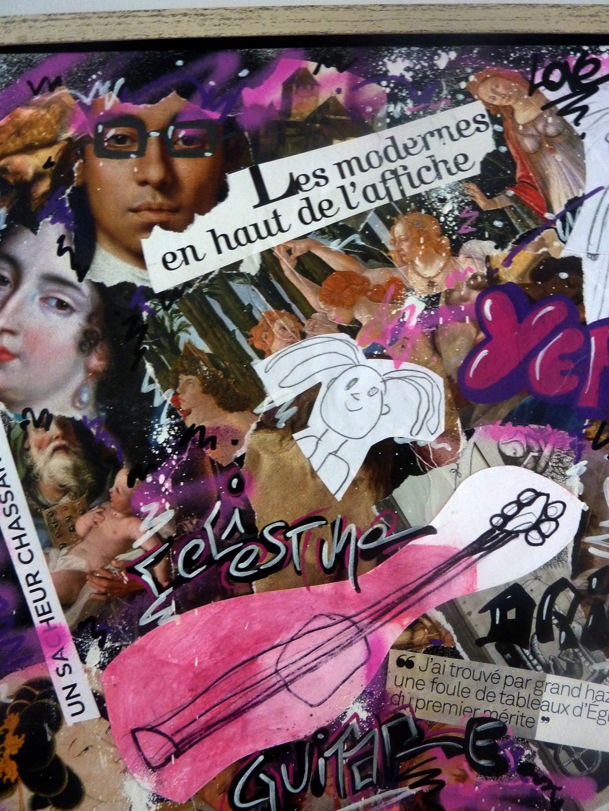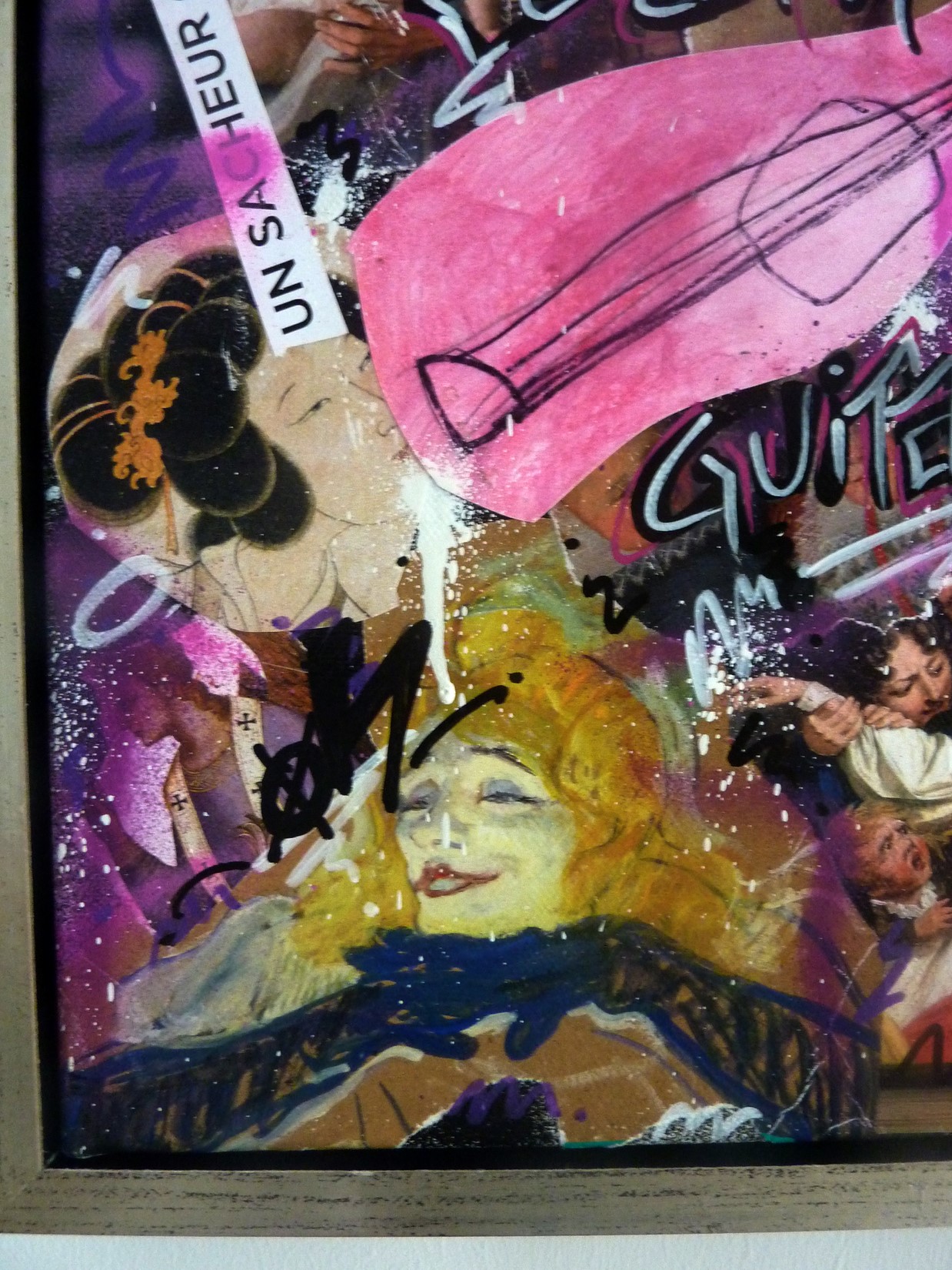 Collage, spray et acrylique sur toile montée sur châssis + caisse américaine