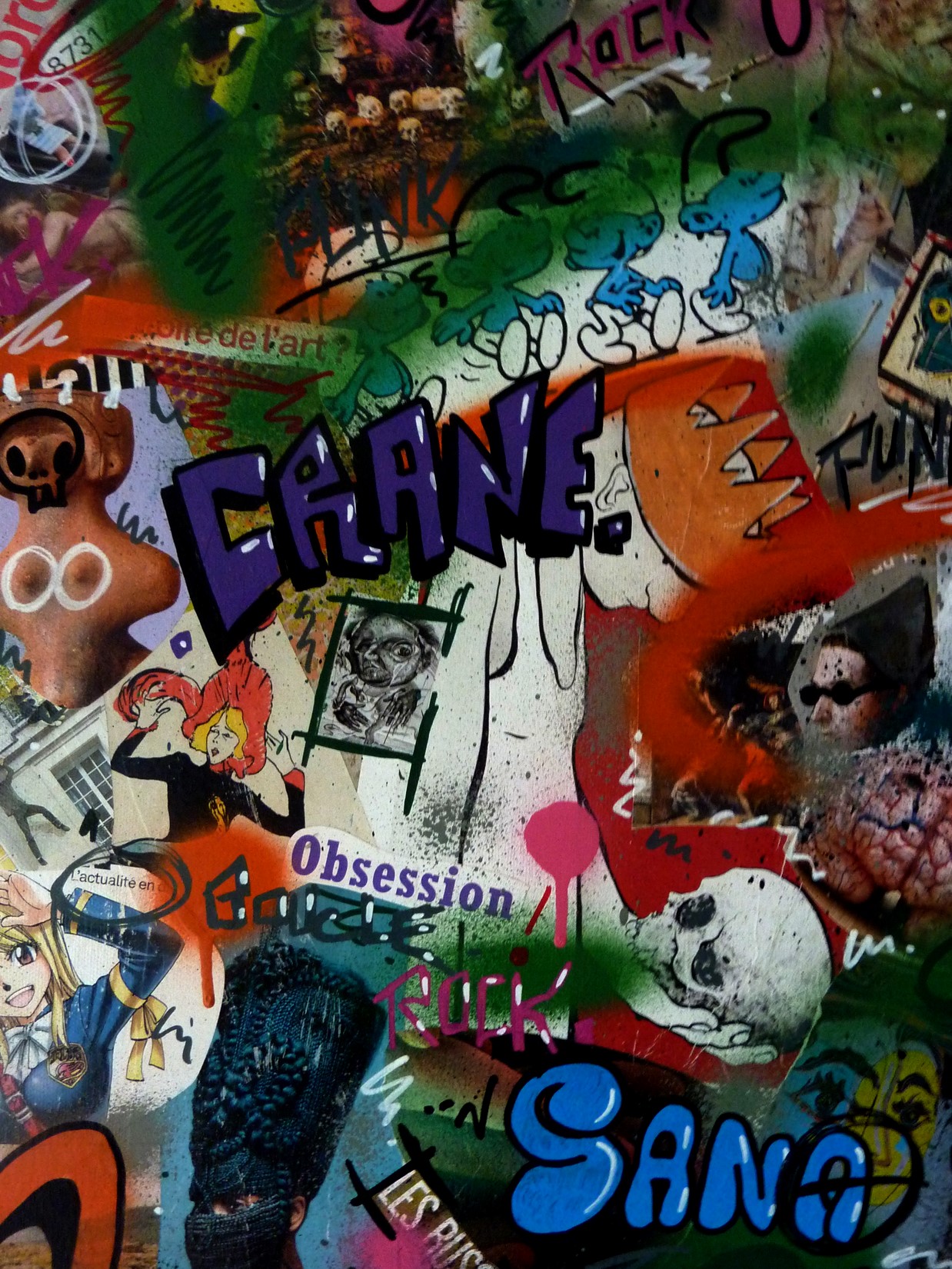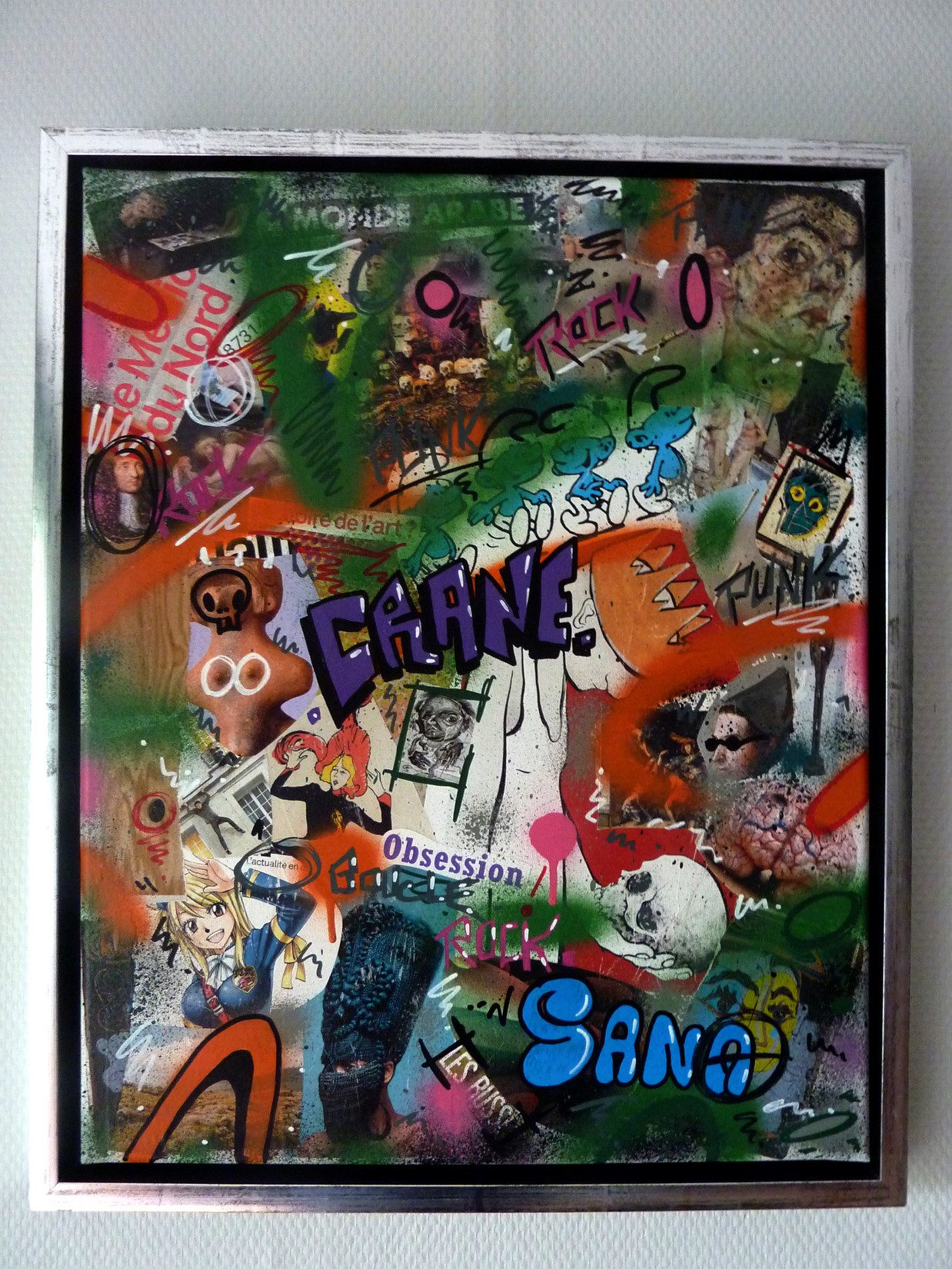 Collage, Spray et acrylique sur toile montée sur châssis