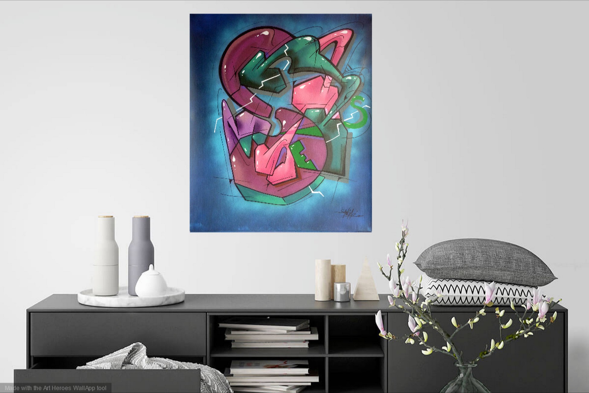Spray et acrylique sur toile enroulée