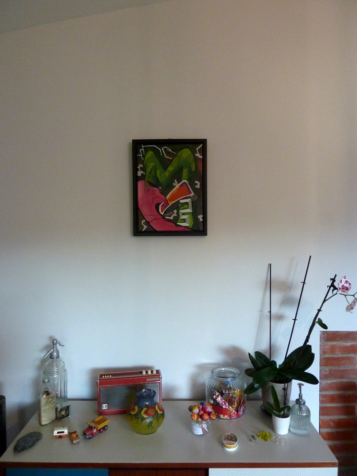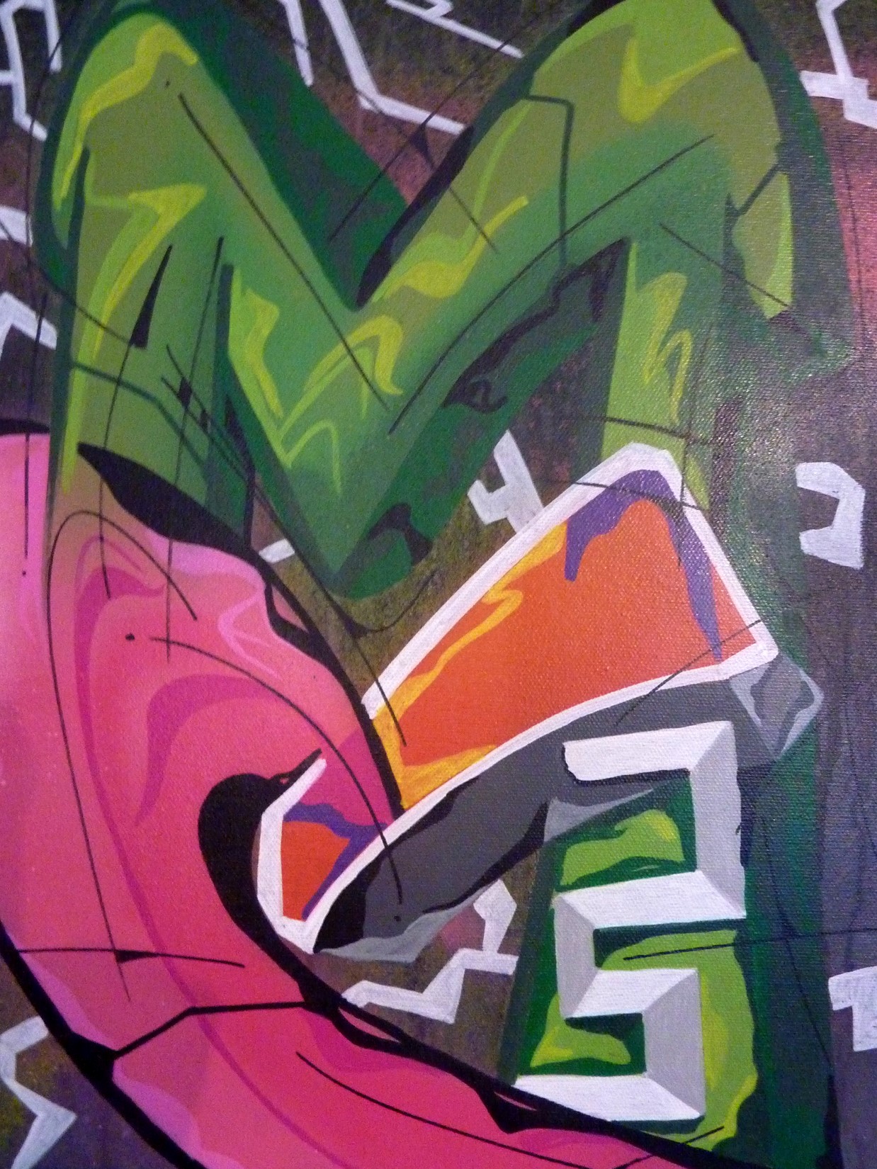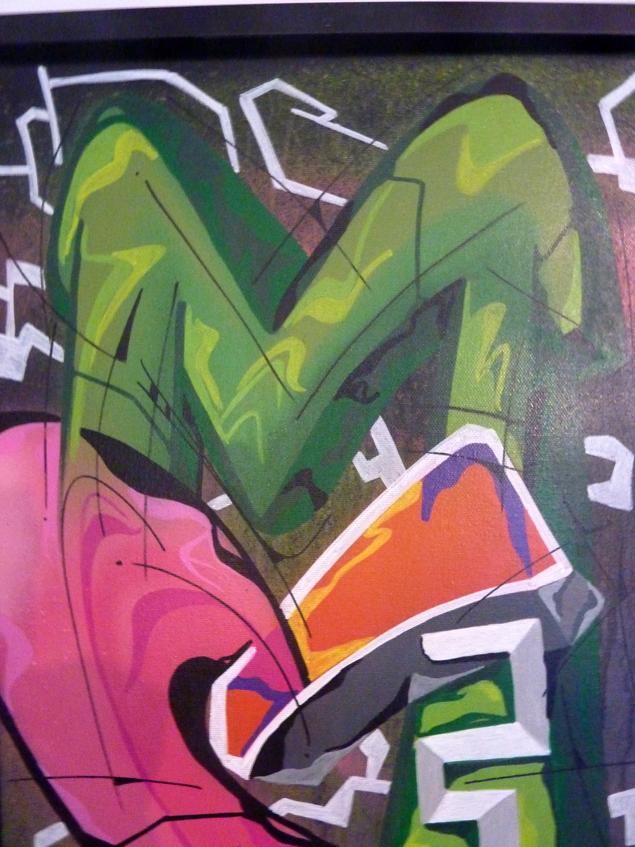 Spray et acrylique sur toile montée sur châssis + caisse américaine