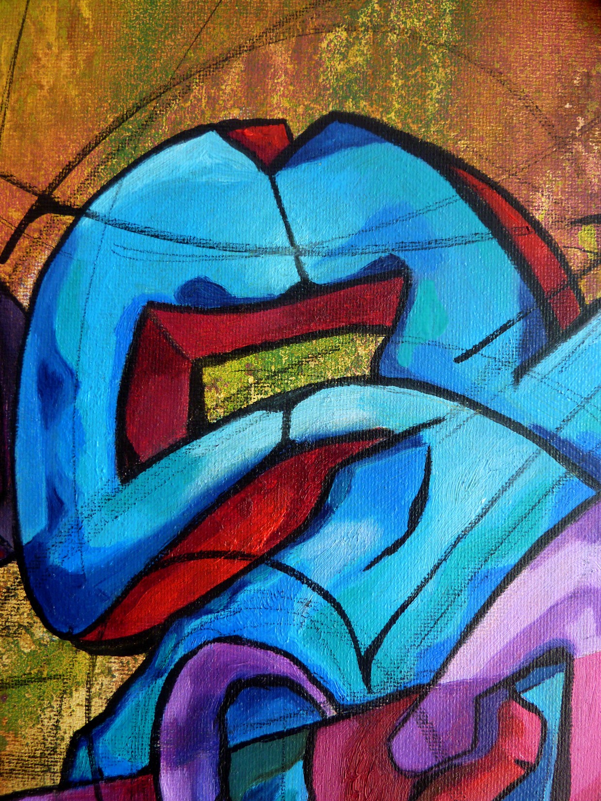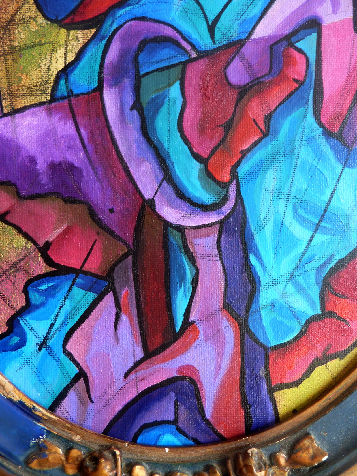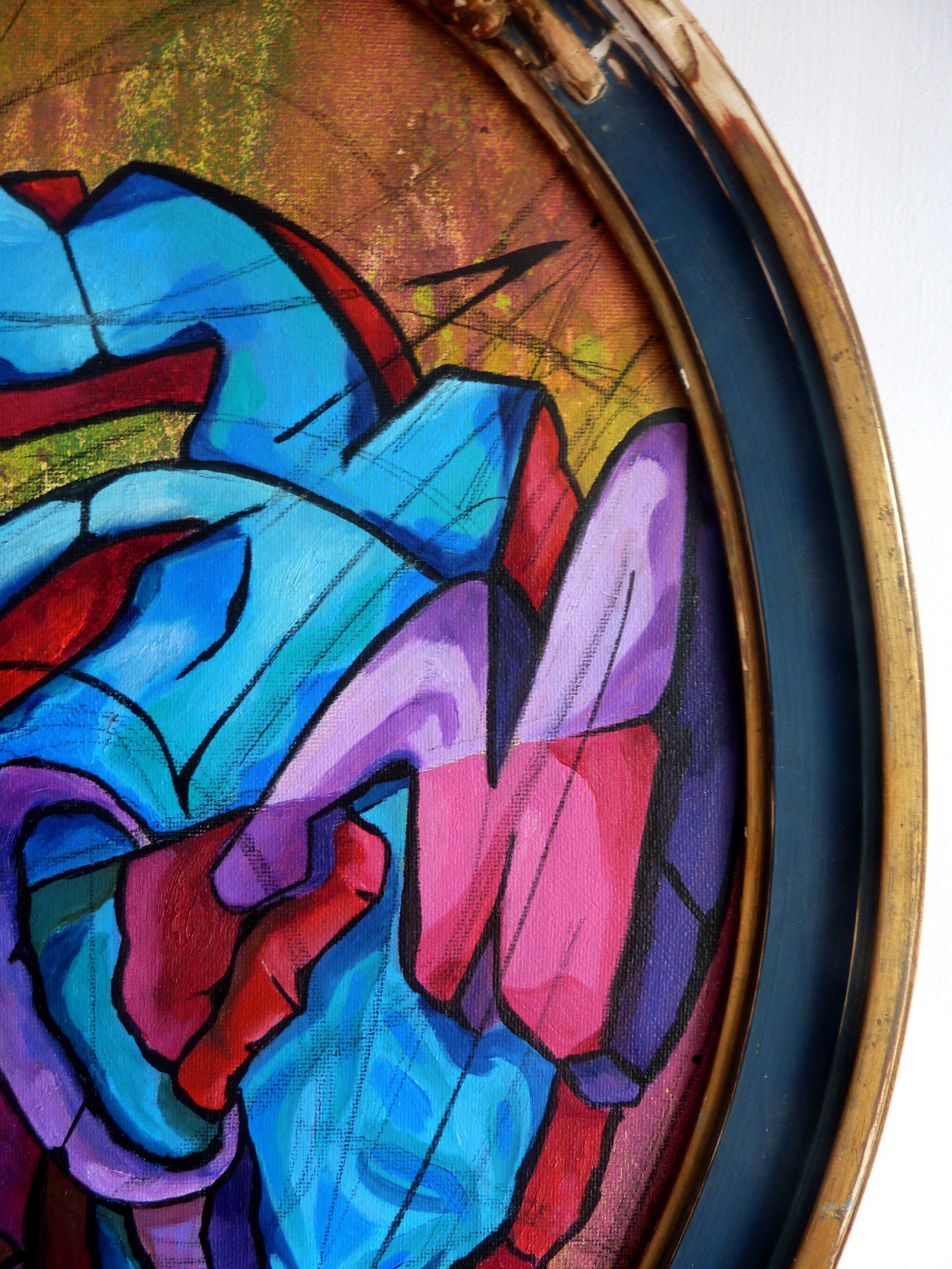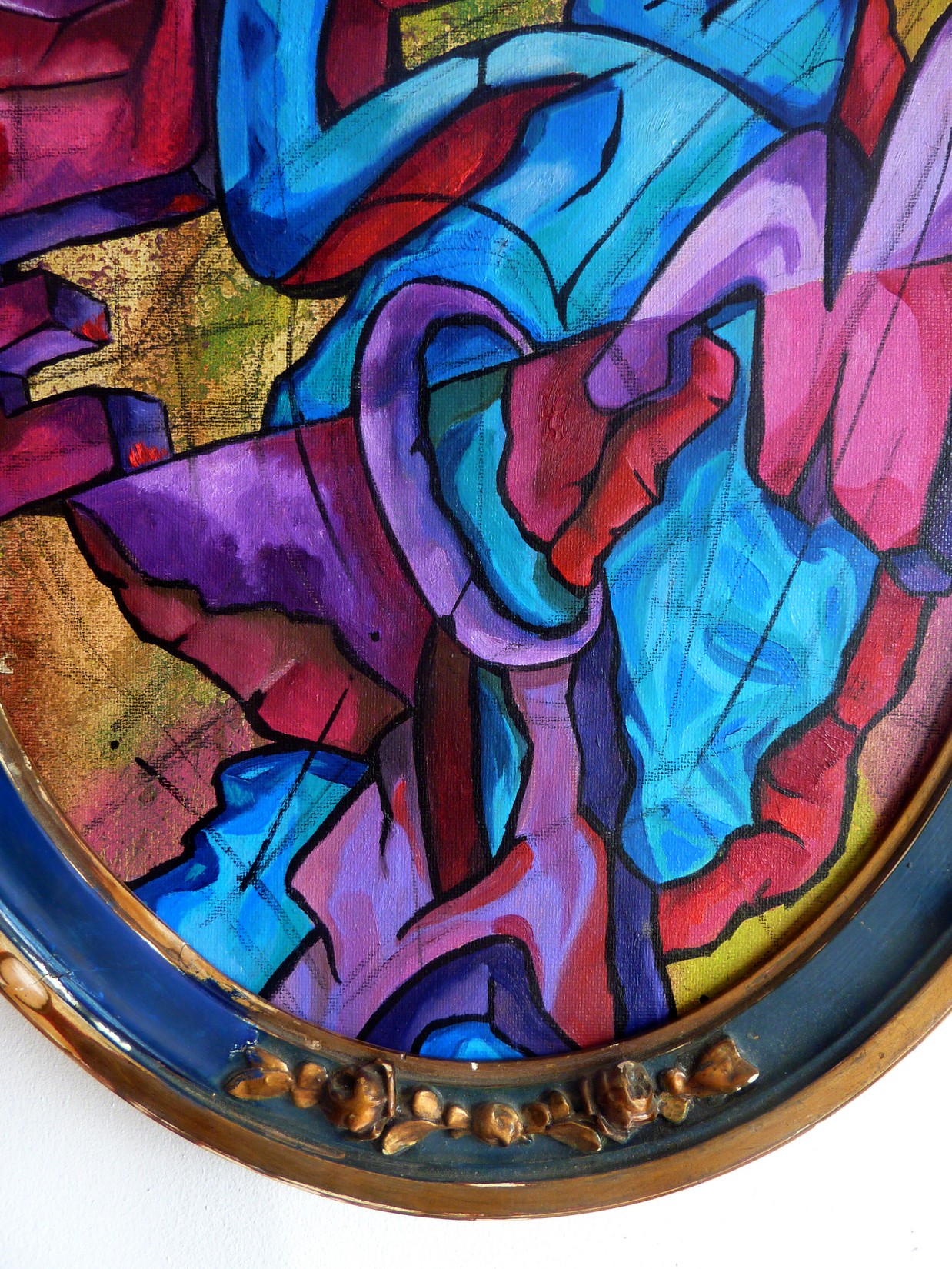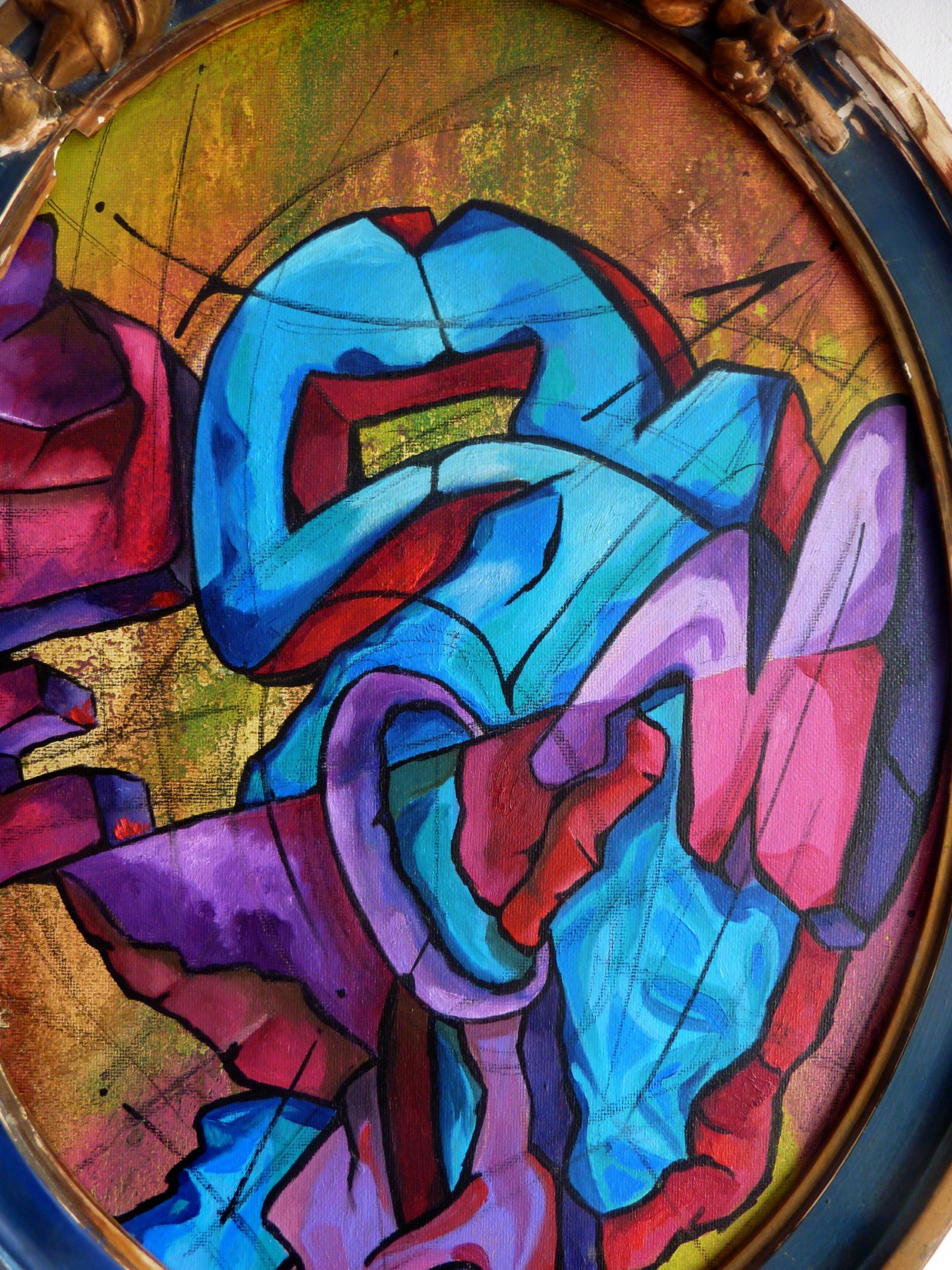 Acrylique, spray et huile sur toile montée sur châssis, avec cadre ancien.