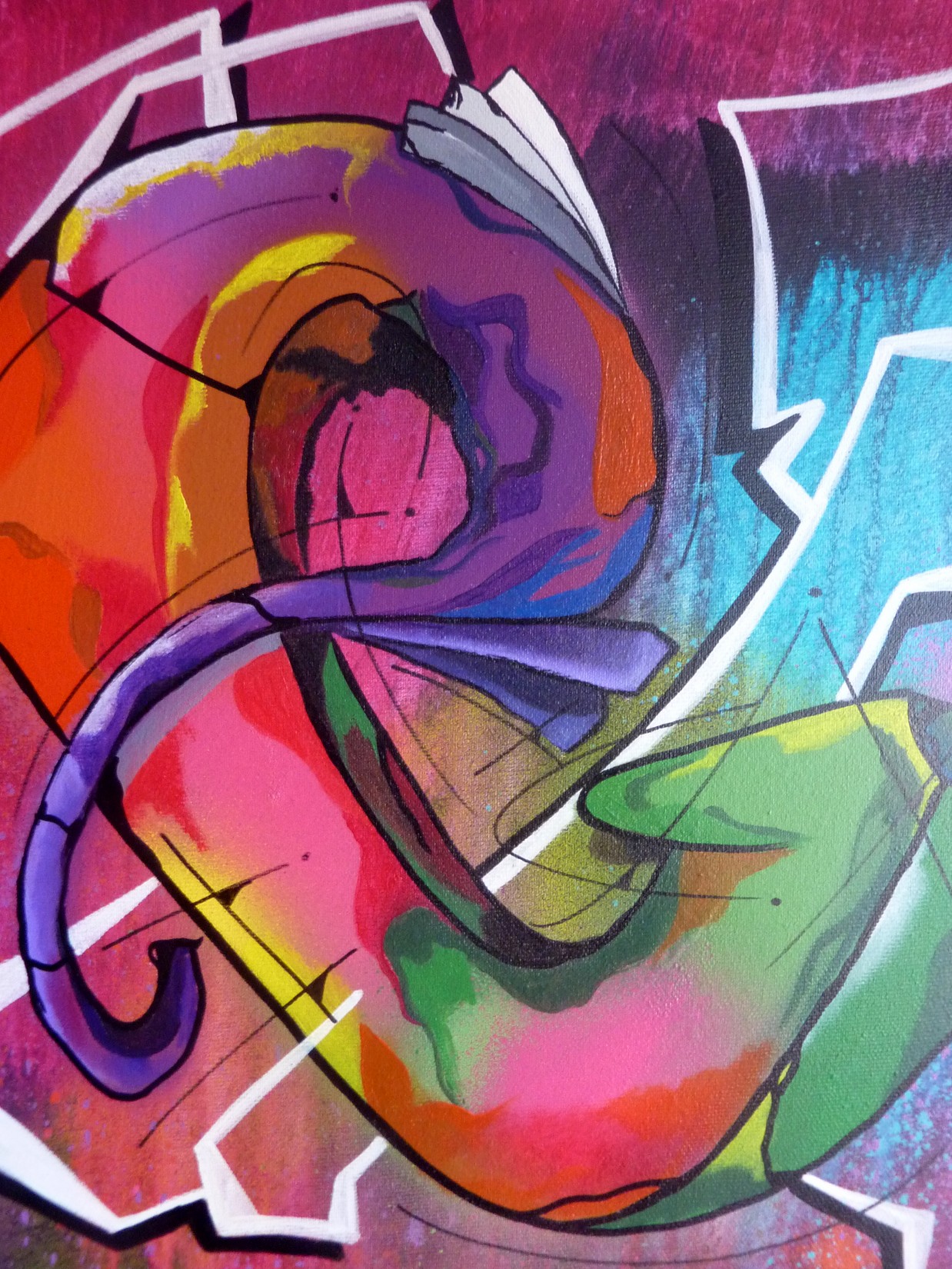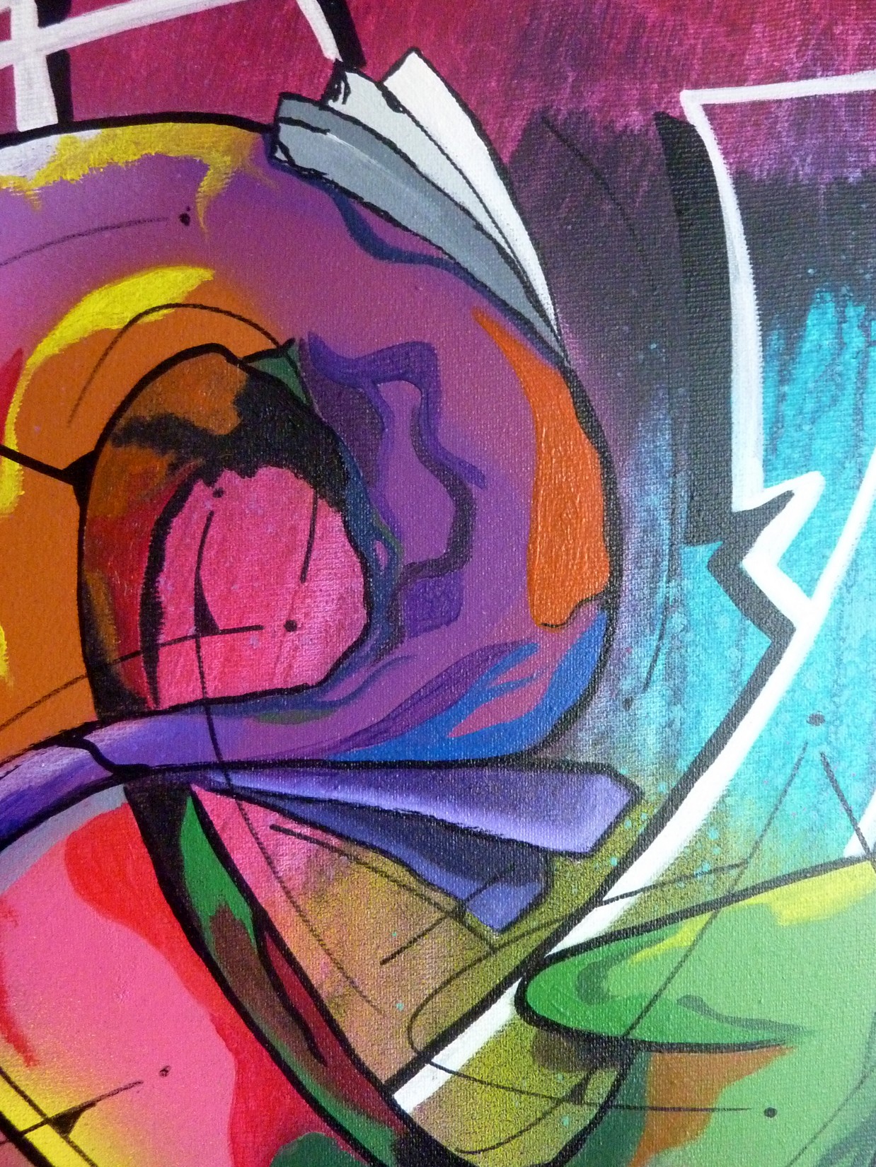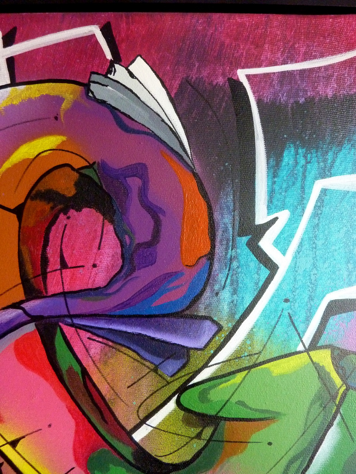 Acrylique et spray sur toile montée sur châssis, avec cadre caisse américaine noir.