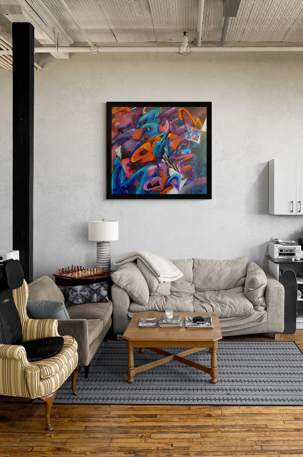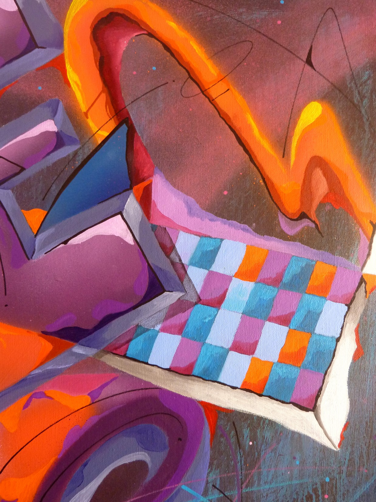 Spray et huile sur toile montée sur châssis