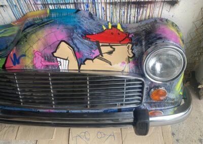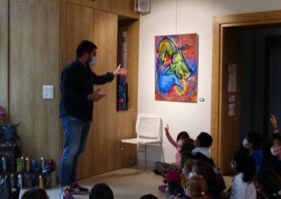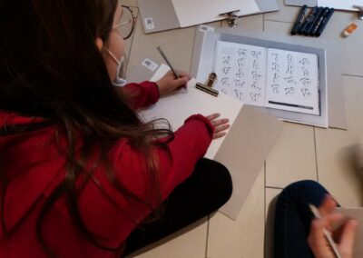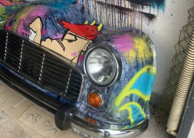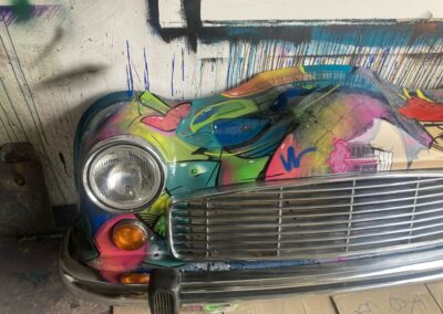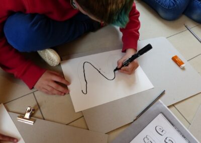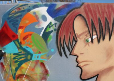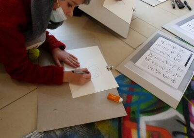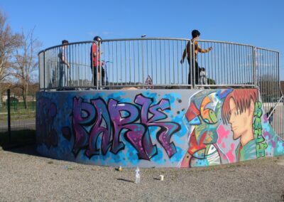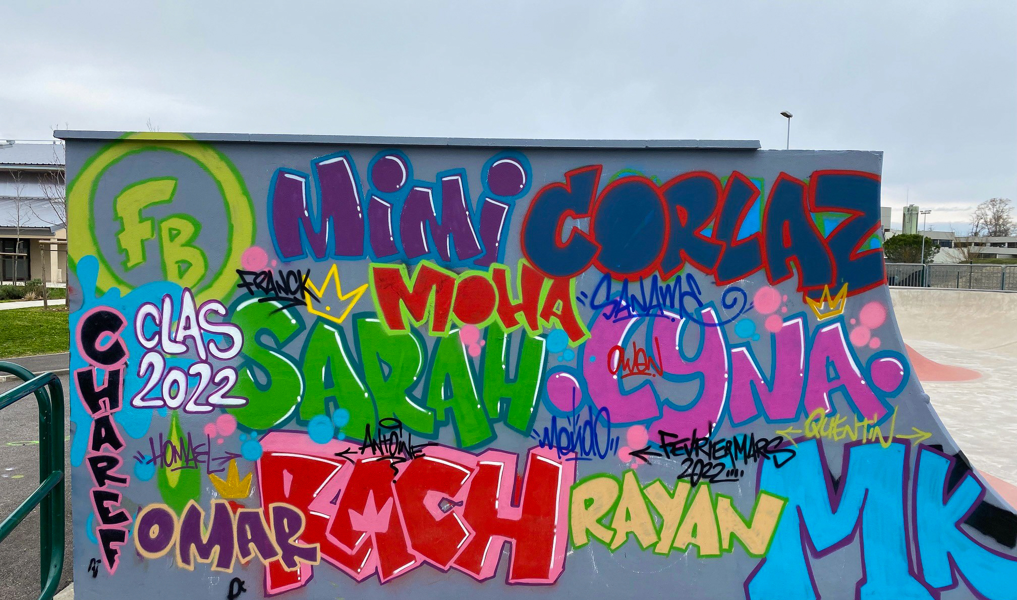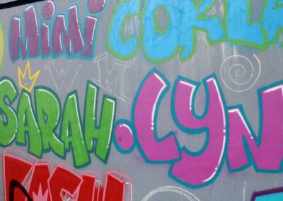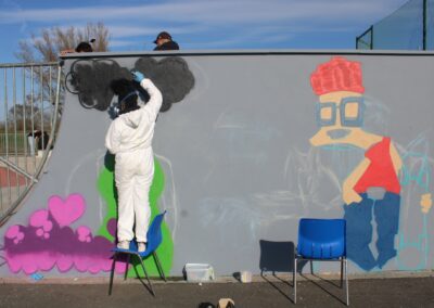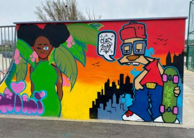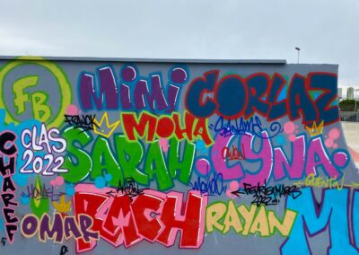 J’interviens dans des contextes variés : en milieu scolaire, associatif, professionnel… pour créer des fresques uniques, pensées en lien avec les lieux et les personnes qui les habitent.